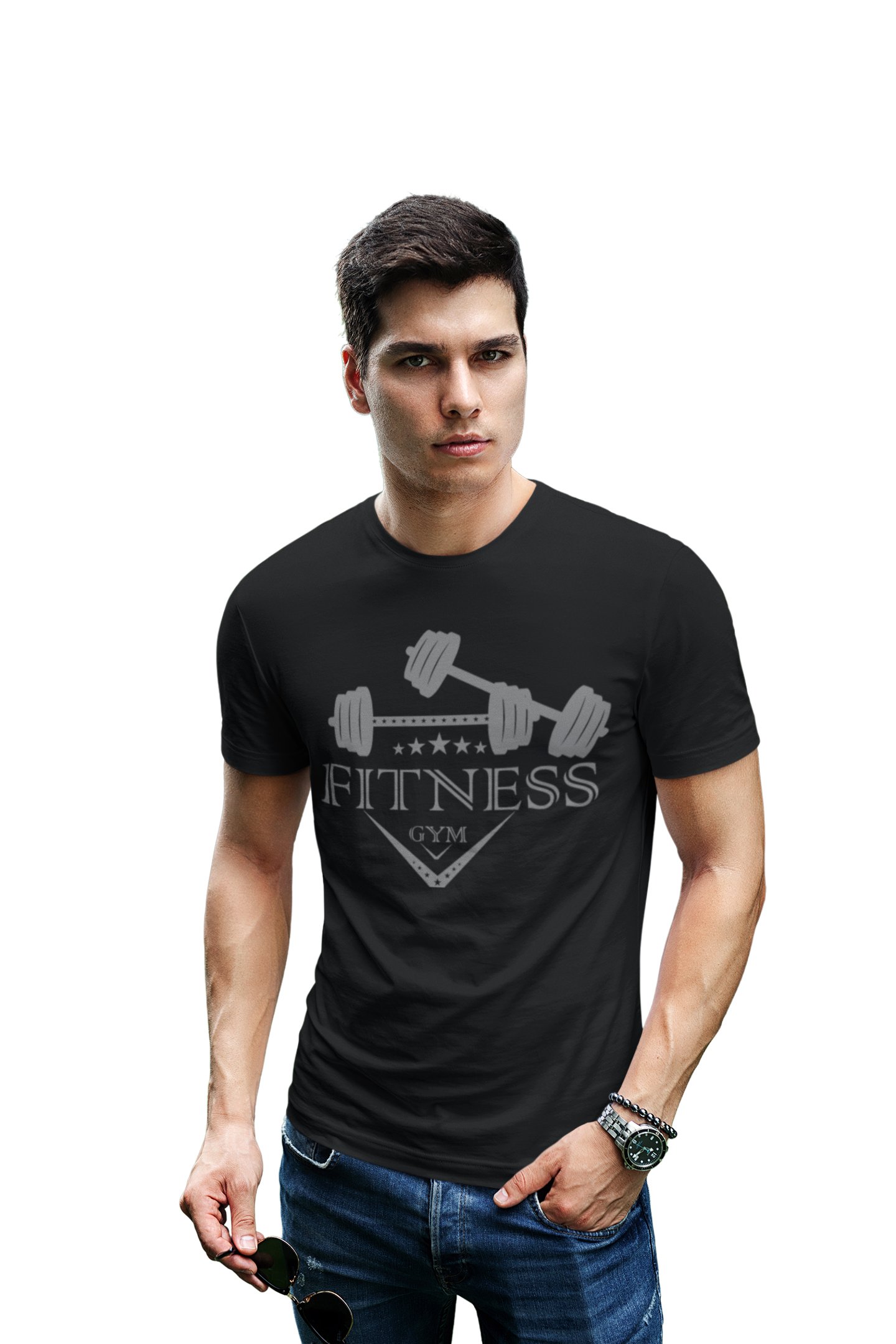 Fitness Gym, 2 Dumbles, Round Neck Gym Tshirt (Black Tshirt) - Clothes for Gym Lovers - Suitable for Gym Going Person - Foremost Gifting Material for Your Friends and Close Ones