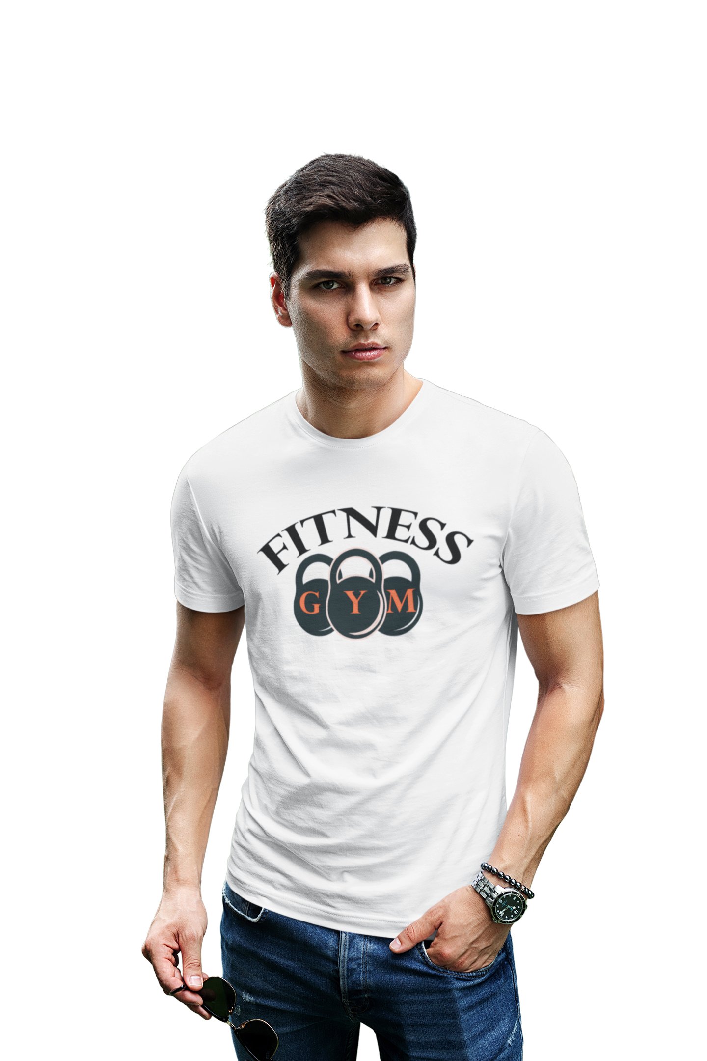 Fitness Gym, (BG 3 Black Locks), Round Neck Gym Tshirt (White Tshirt) - Clothes for Gym Lovers - Foremost Gifting Material for Your Friends and Close Ones