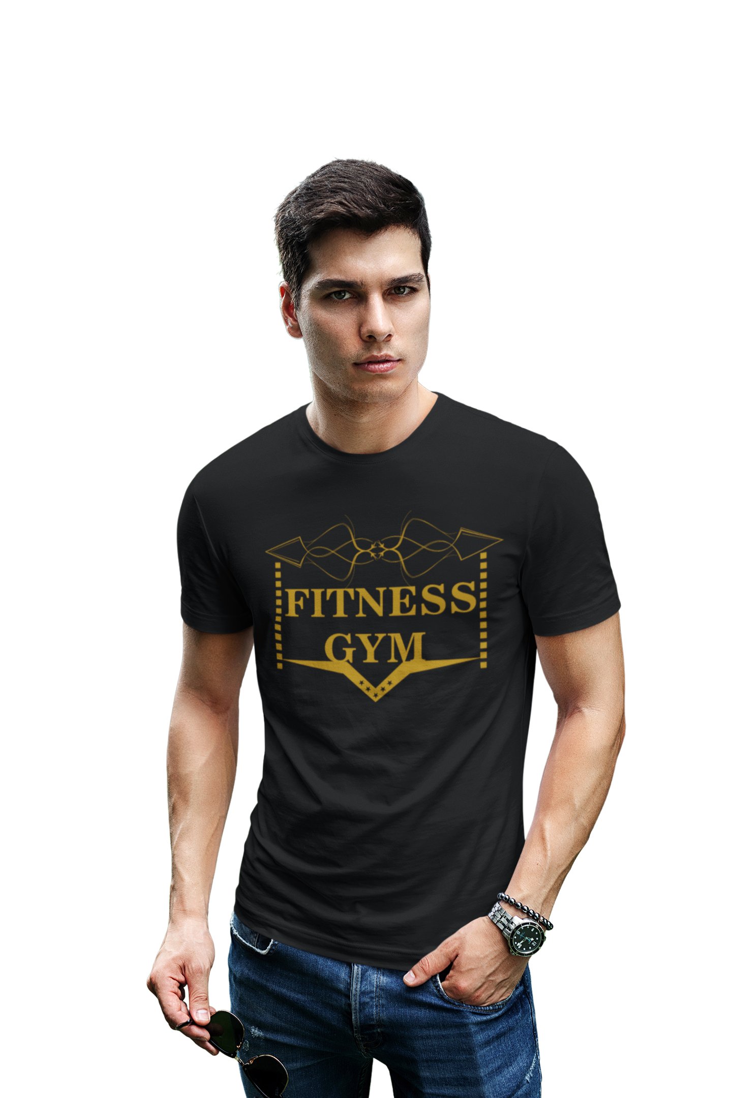 Fitness Gym, (BG Golden), Round Neck Gym Tshirt (Black Tshirt) - Clothes for Gym Lovers - Suitable for Gym Going Person - Foremost Gifting Material for Your Friends and Close Ones