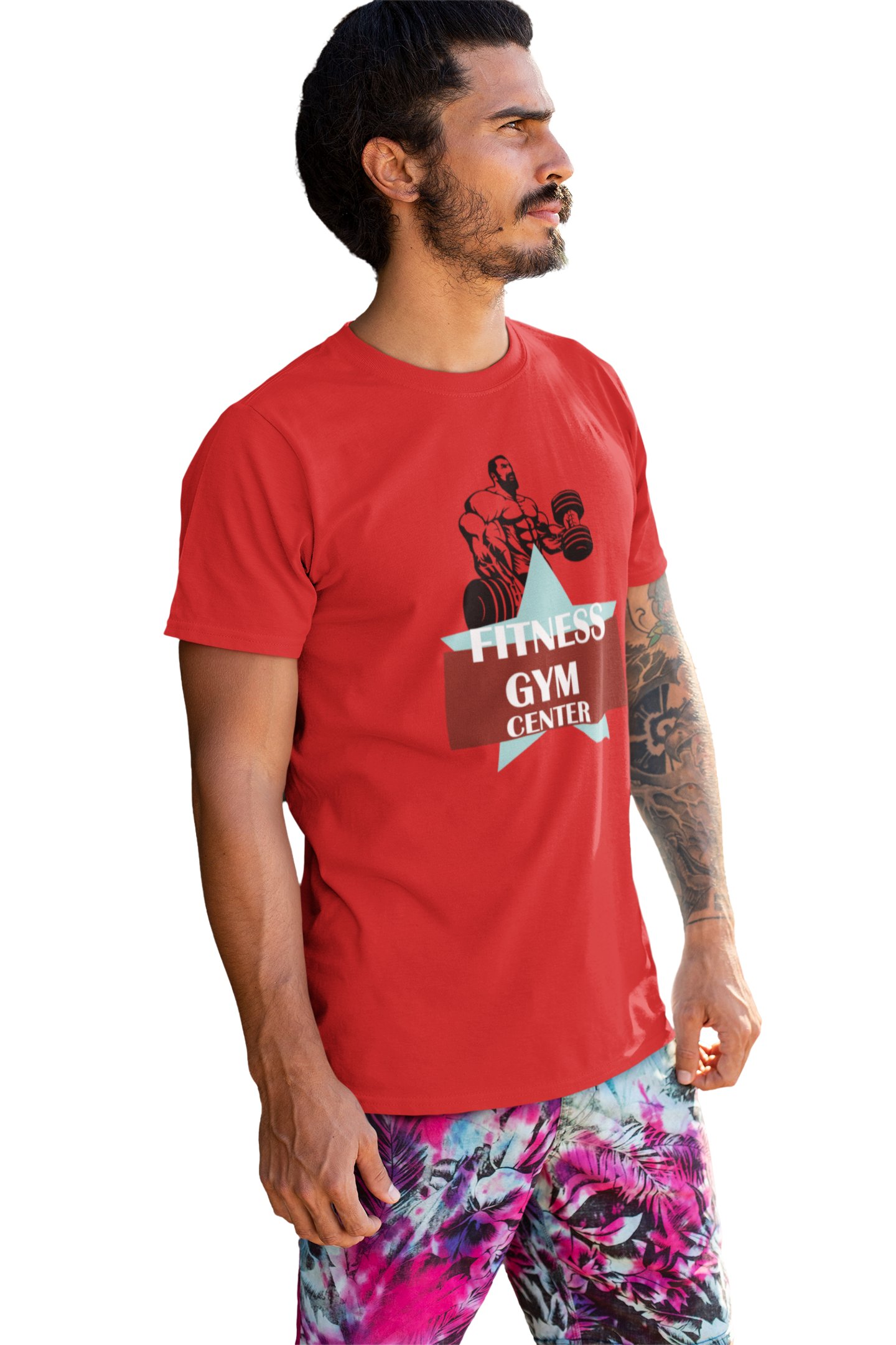 Fitness Gym Center, (BG Blue and Cherry), Round Neck Gym Tshirt (Red Tshirt) - Clothes for Gym Lovers - Suitable for Gym Going Person - Foremost Gifting Material for Your Friends and Close Ones