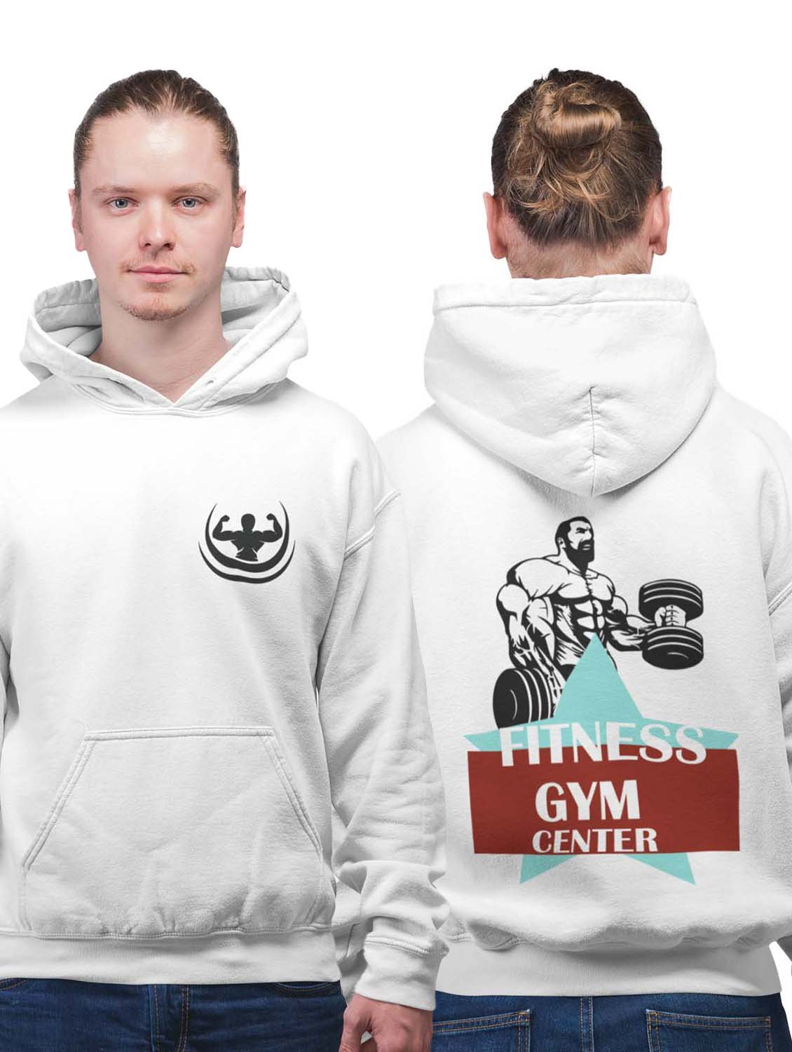 Fitness Gym Center, (BG Green and Brown) printed artswear white hoodies for winter casual wear specially for Men