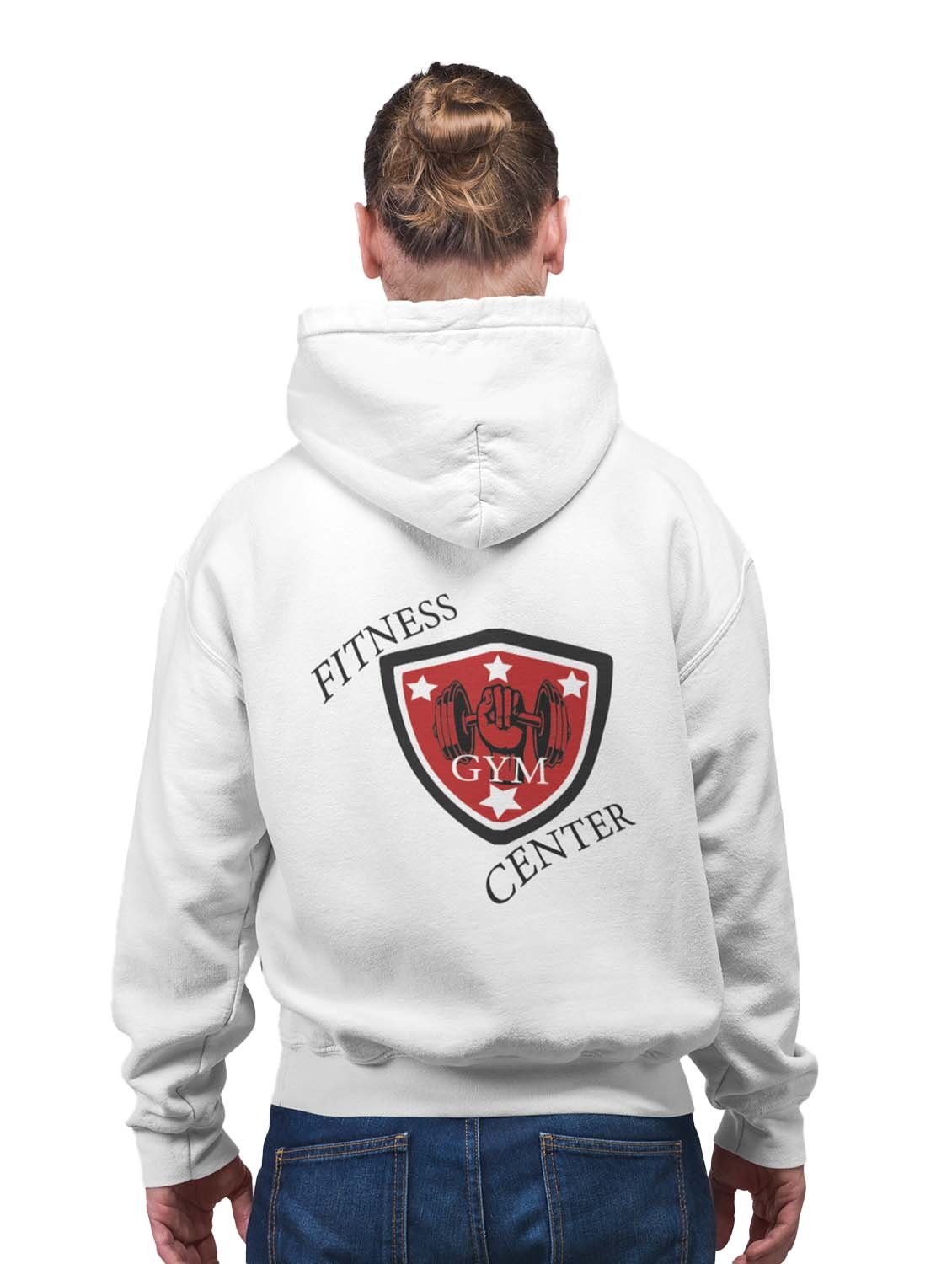 Fitness Gym Center, (BG Shield Red, Black and White) printed artswear white hoodies for winter casual wear specially for Men