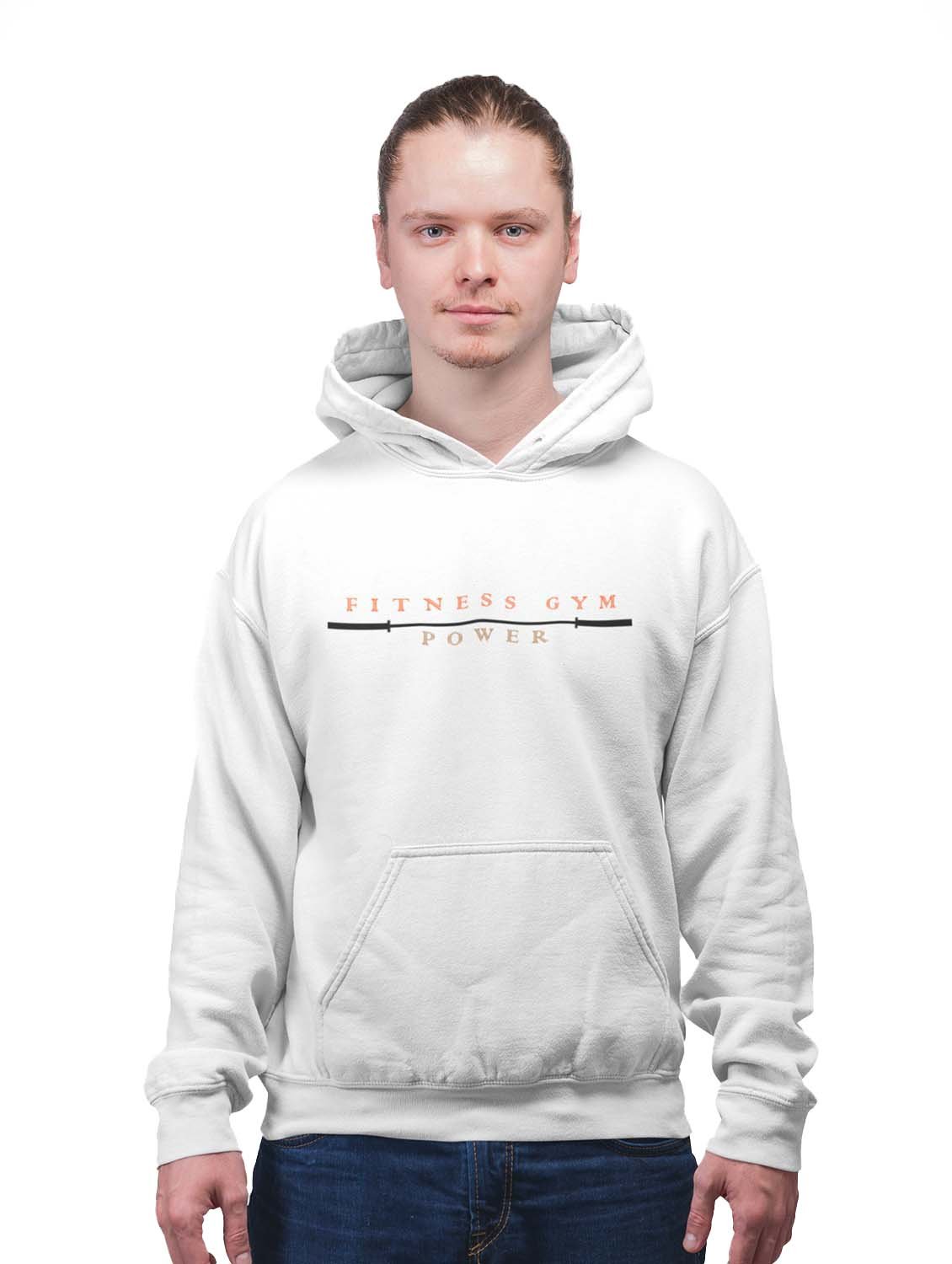 Fitness Gym Power Orange And Yellow Text printed artswear white hoodies for winter casual wear specially for Men