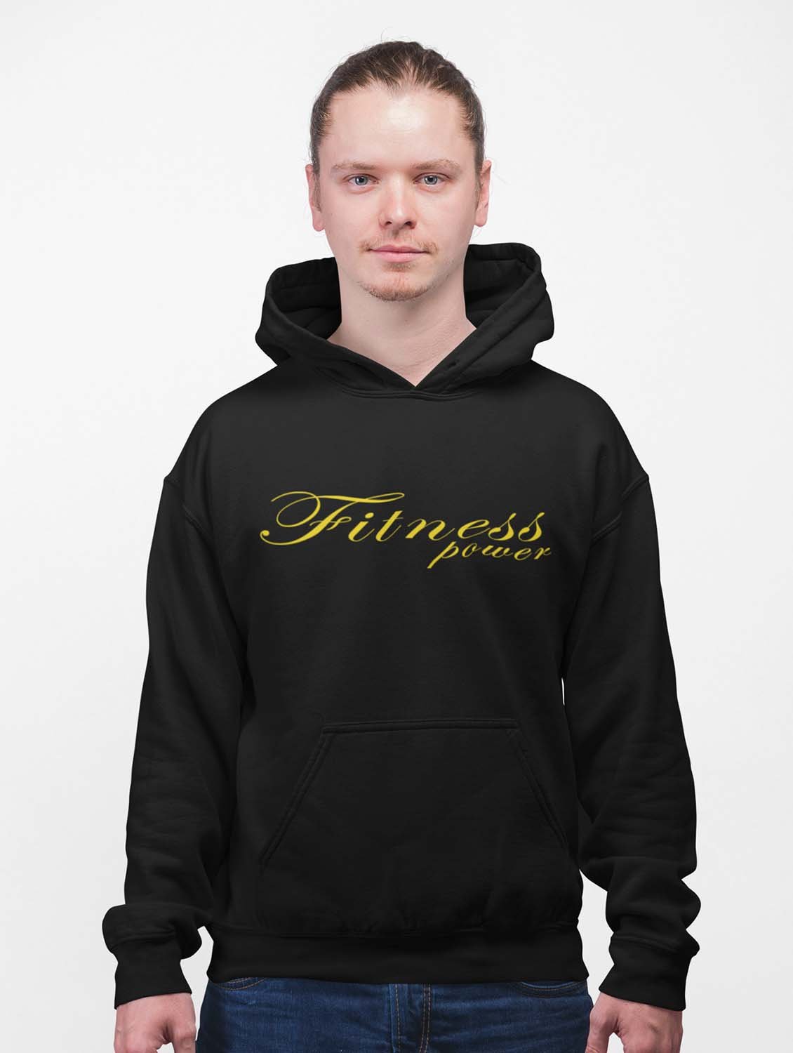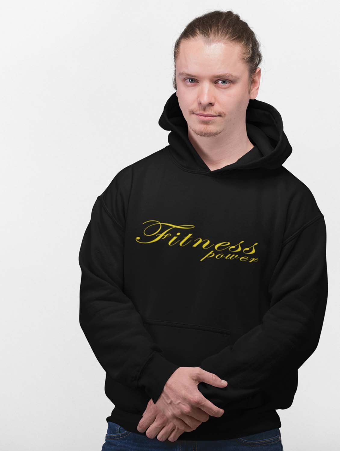 Fitness Power, (BG Golden) printed artswear black hoodies for winter casual wear specially for Men