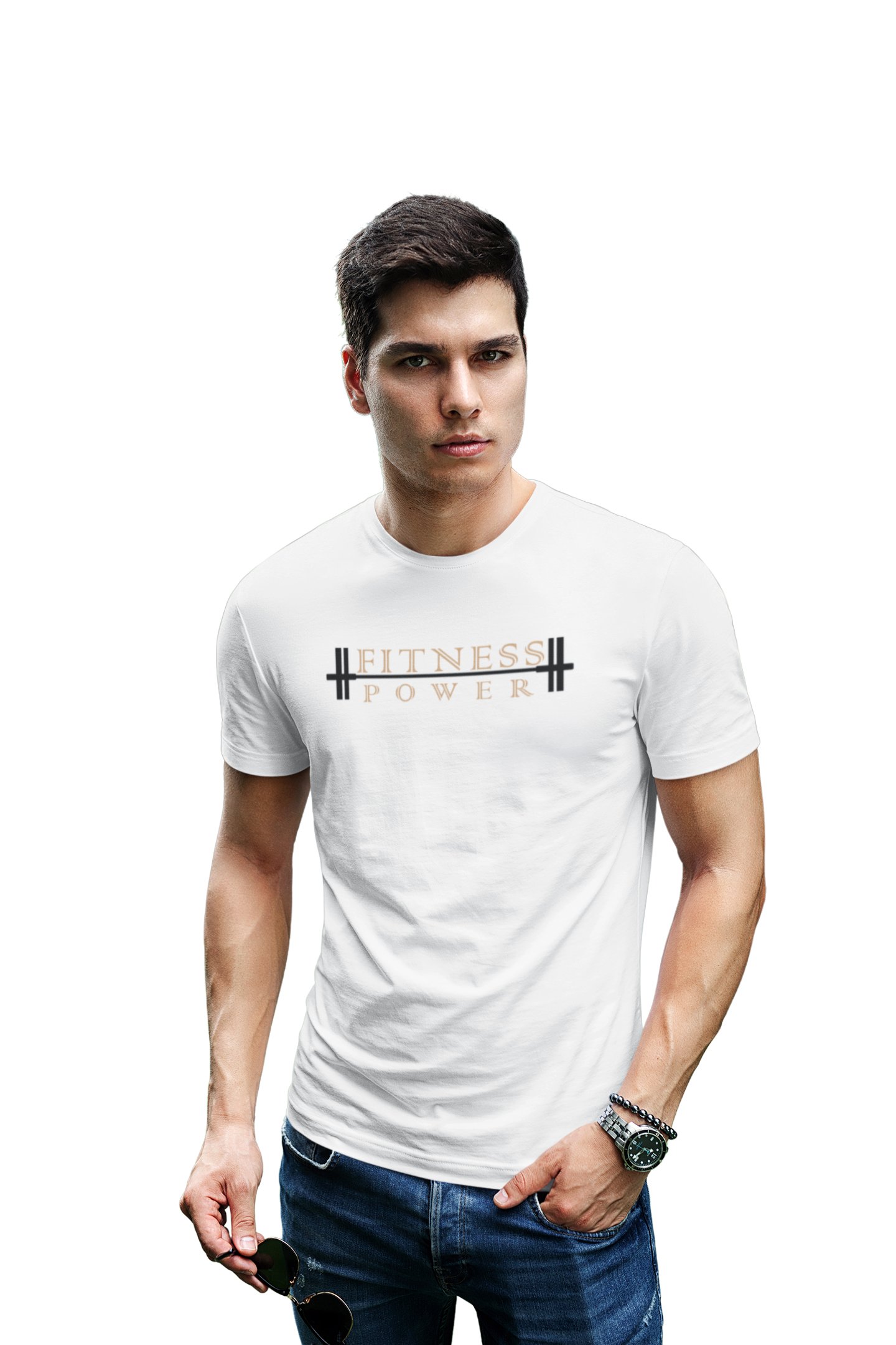 Fitness Power, (BG Orange), Round Neck Gym Tshirt (White Tshirt) - Clothes for Gym Lovers - Suitable for Gym Going Person - Foremost Gifting Material for Your Friends and Close Ones