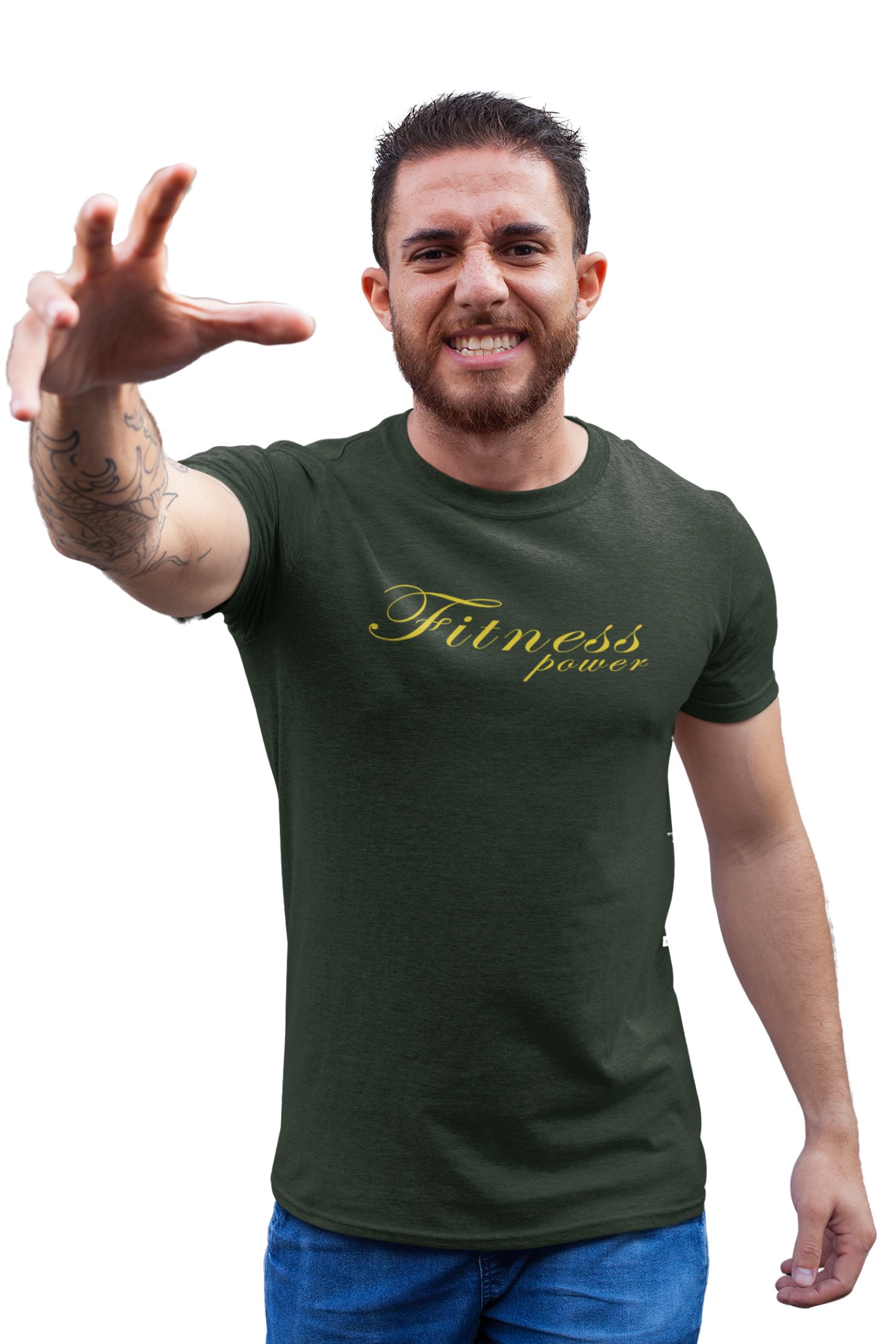 Fitness Power, Cursive Handwriting, Round Neck Gym Tshirt - Foremost Gifting Material for Your Friends and Close Ones
