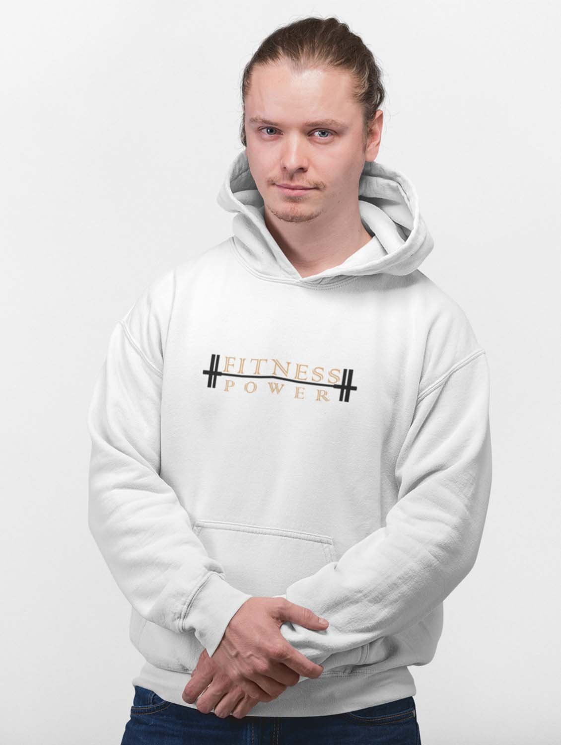 Fitness Power Yellow Text printed artswear white hoodies for winter casual wear specially for Men