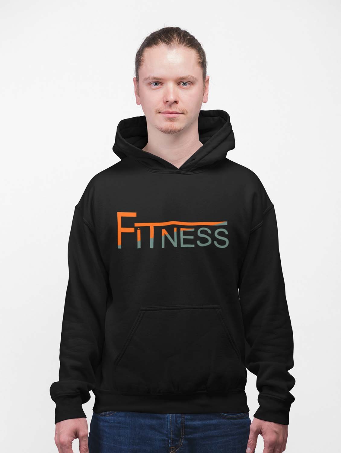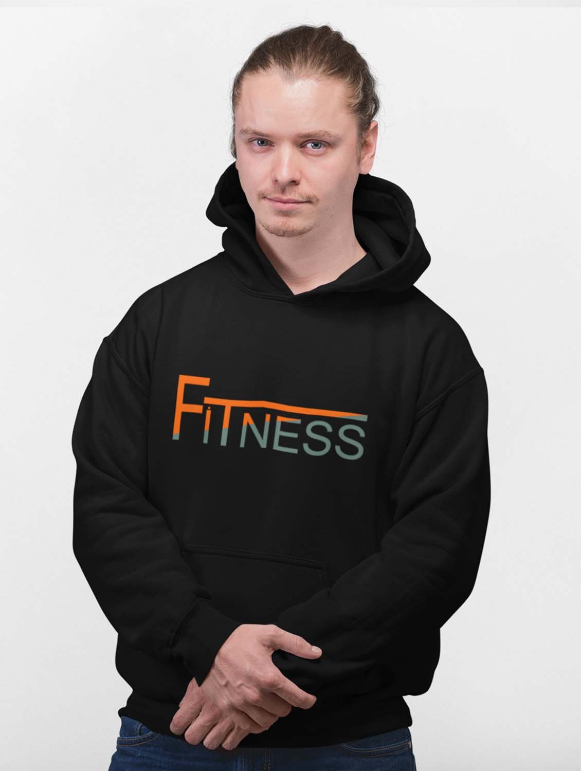 Fitness Text(BG Orange and Gray)printed activewear black hoodies for winter casual wear specially for Men