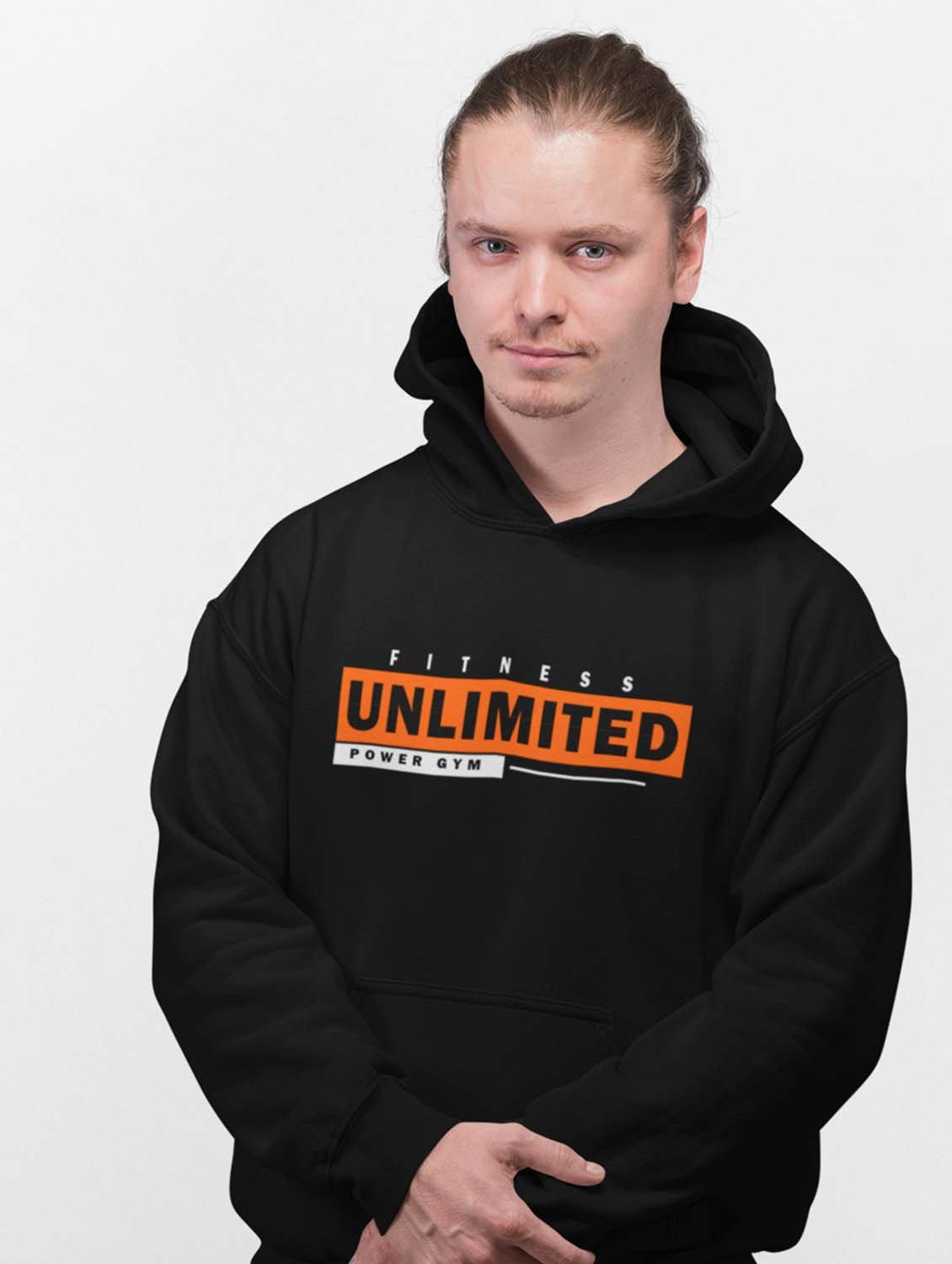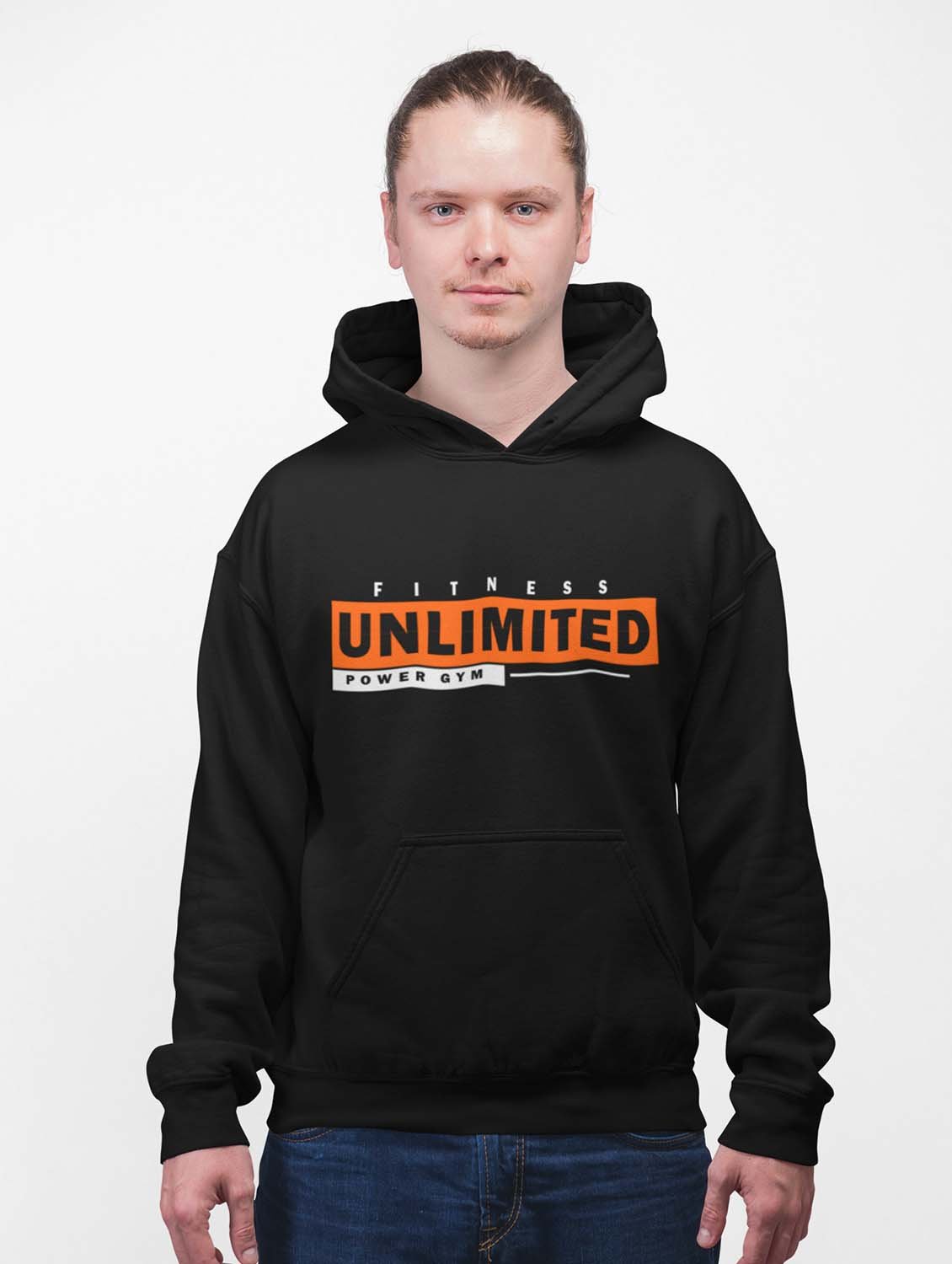 Fitness, Unlimited, Power Gym, 1 Dash (BG Orange and Black)printed artswear black hoodies for winter casual wear specially for Men
