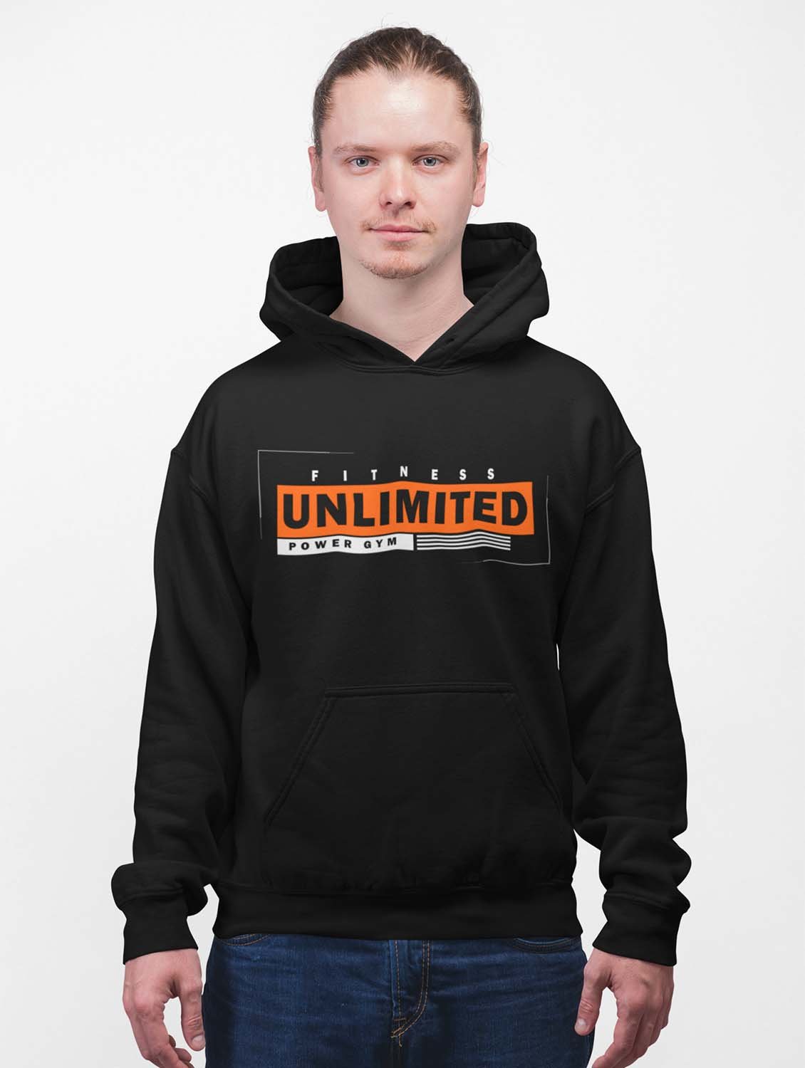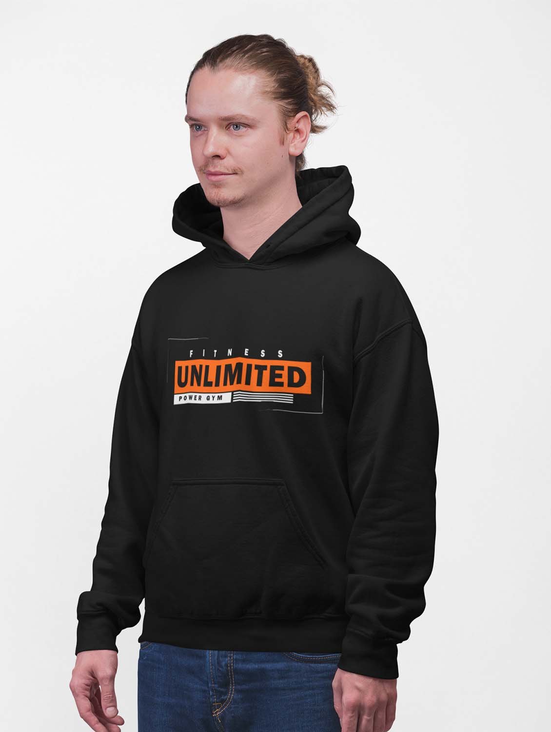 Fitness, Unlimited, Power Gym printed artswear black hoodies for winter casual wear specially for Men