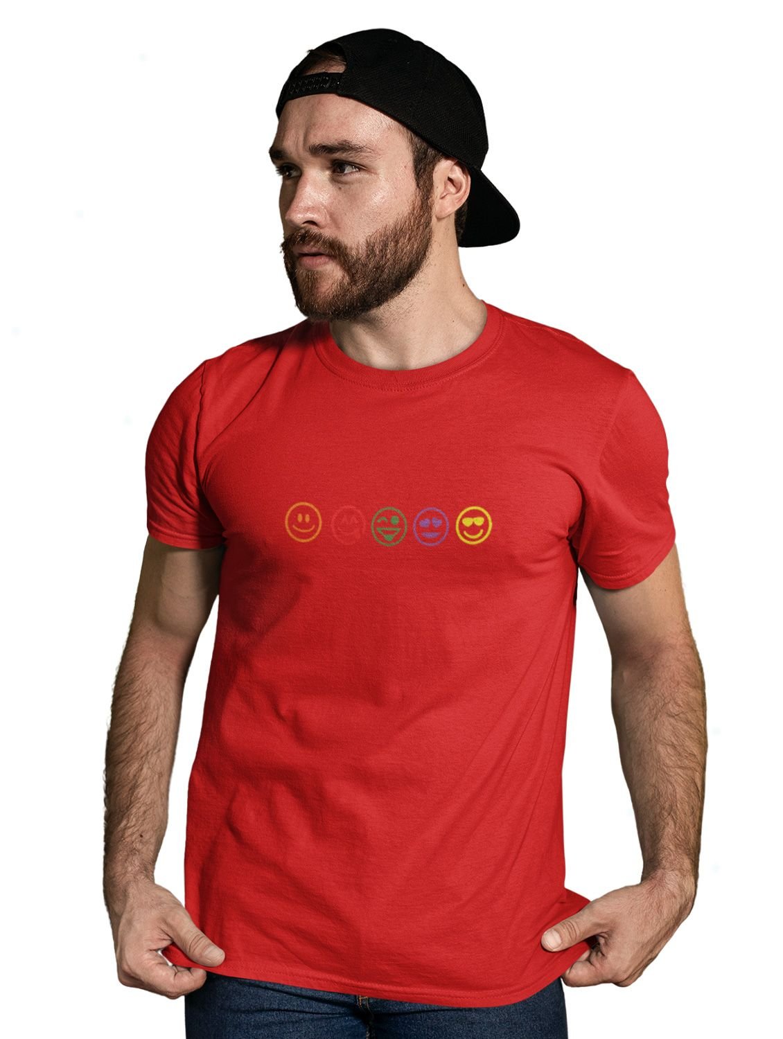 Five Colour Shaded Shapes Emojis T-shirt (Red) - Clothes for Emoji Lovers - Foremost Gifting Material for Your Friends and Close Ones