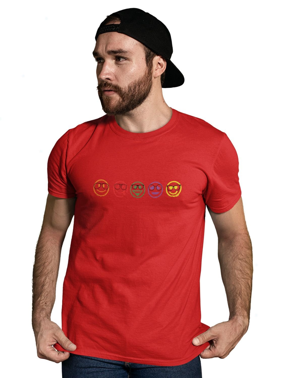 Five Colour Shaded Shapes Emojis T-shirt (Red) - Clothes for Emoji Lovers - Foremost Gifting Material for Your Friends and Close Ones