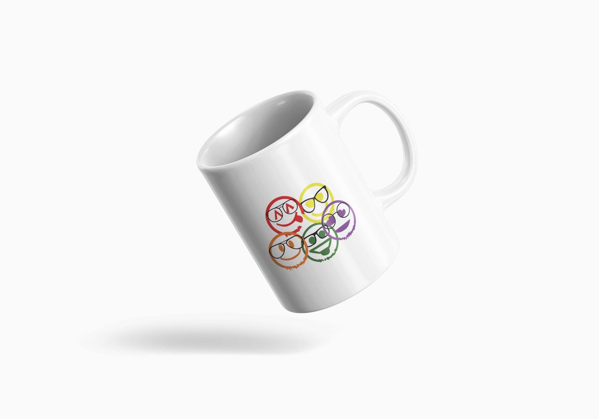 Five Colour Shaded Shapes With Glasses Emojis - emoji printed ceramic white coffee and tea mugs/ cups for emoji lover peoples