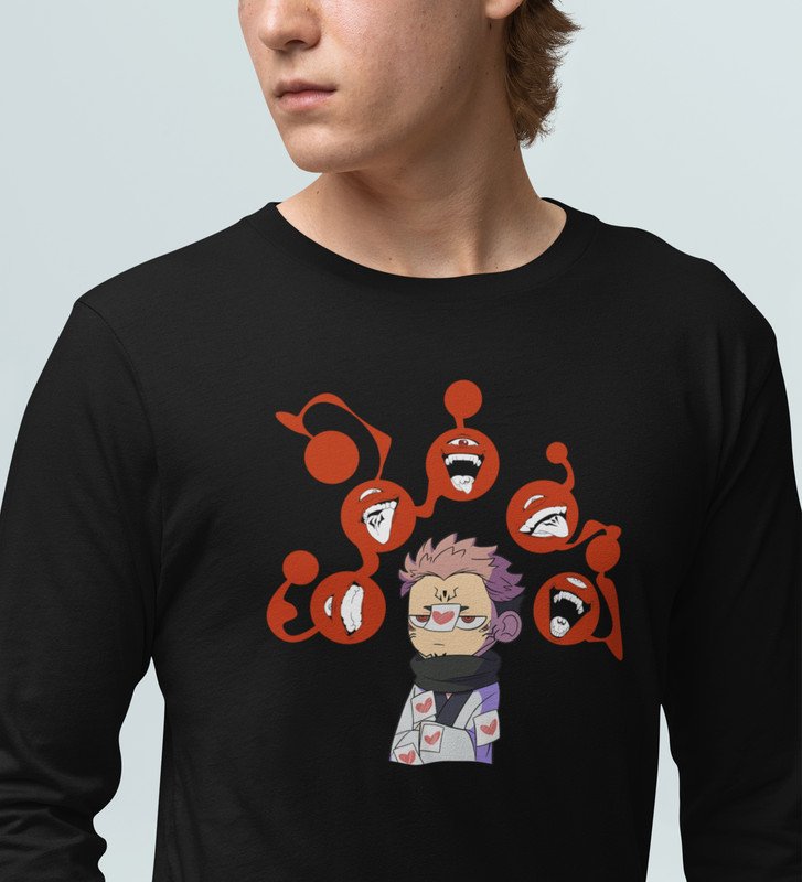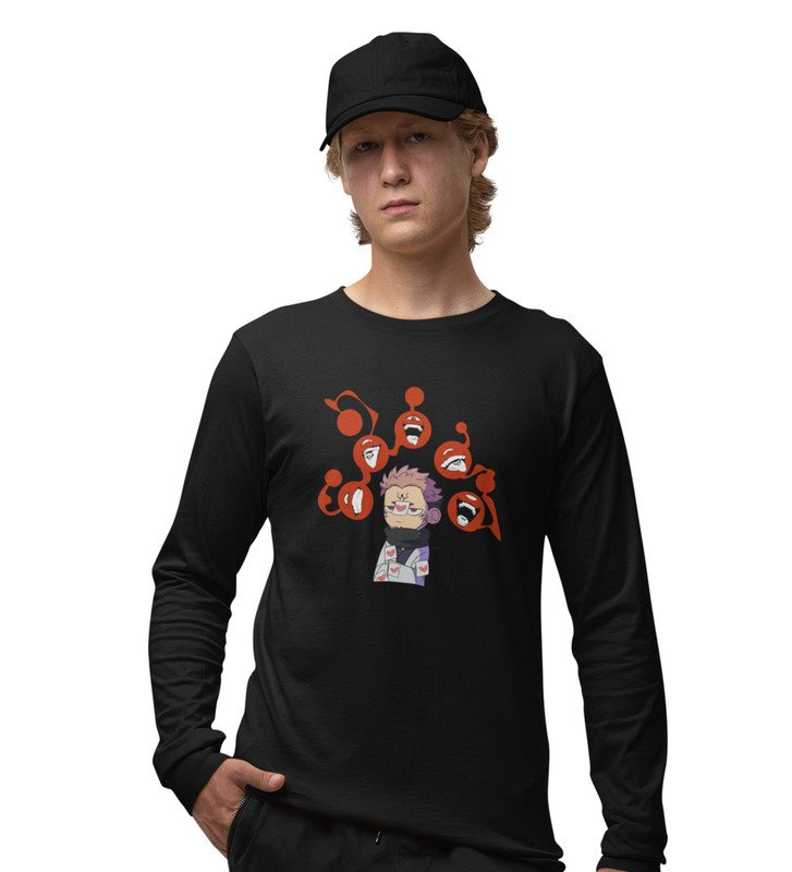 Five Faces Of Itadori Cotton Black Printed Full Sleeves Tshirt For Mens and Boys