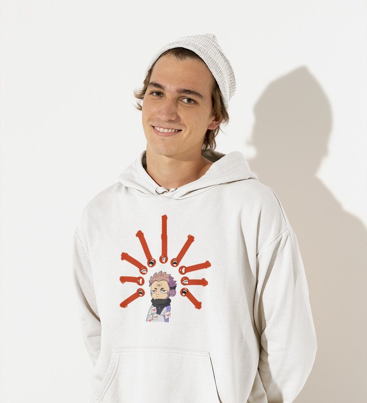 Five Faces Of Itadori Cotton White Printed Hoodies For Mens and Boys