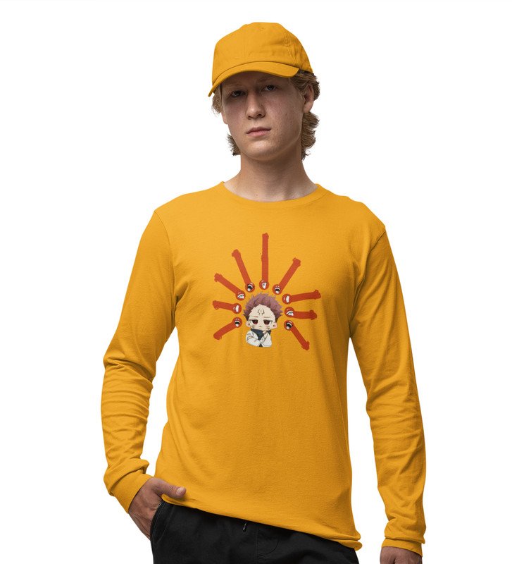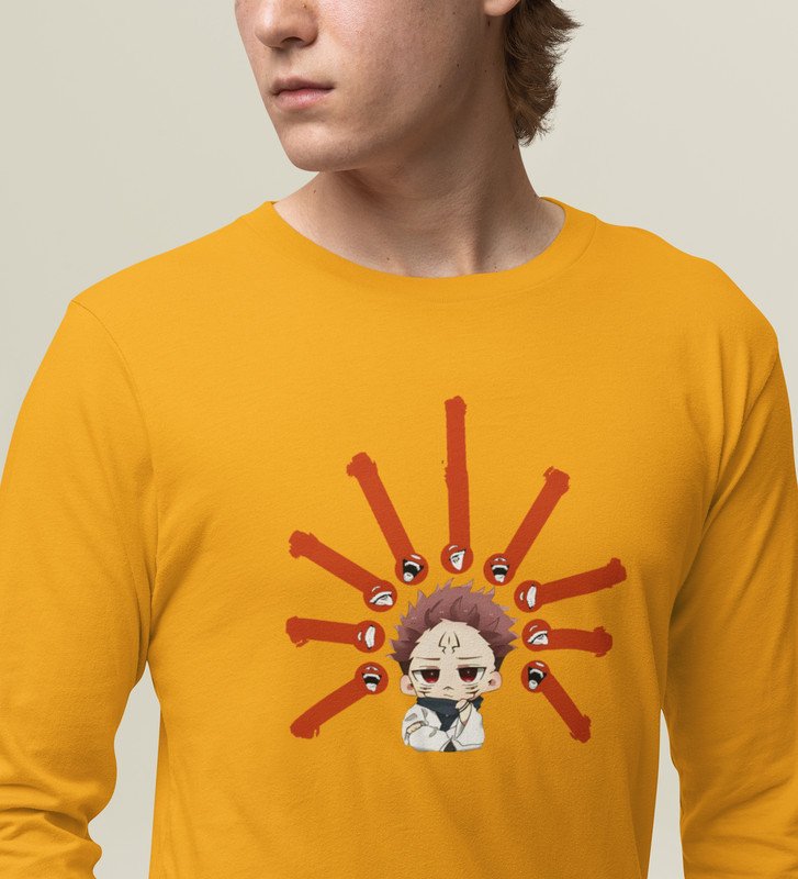 Five Faces Of Itadori Cotton Yellow Printed Full Sleeves Tshirt For Mens and Boys