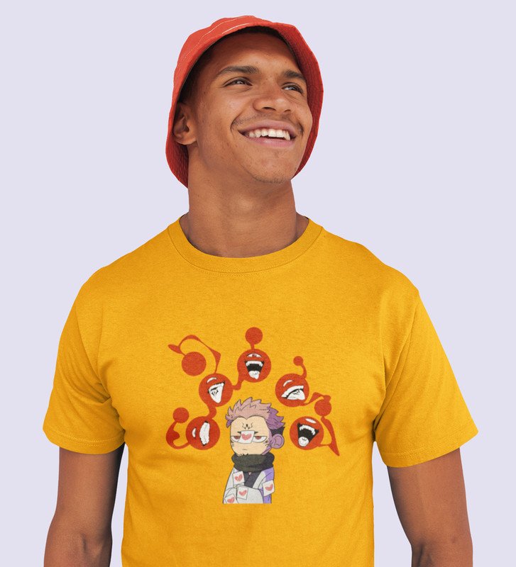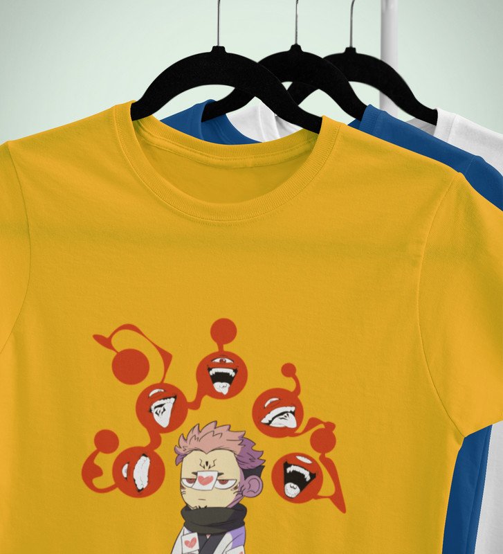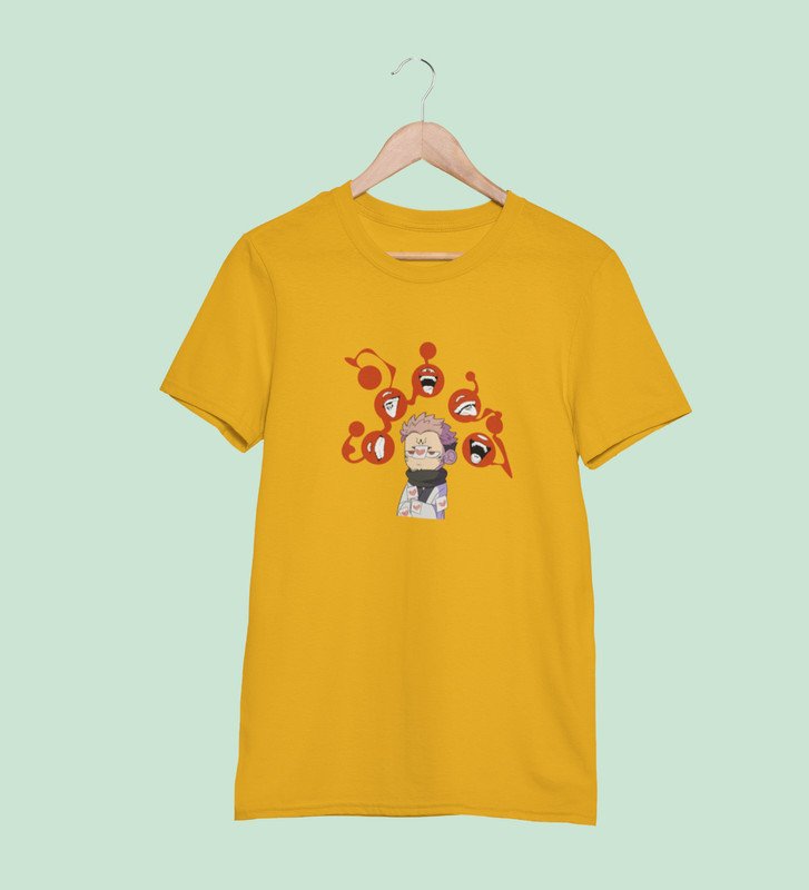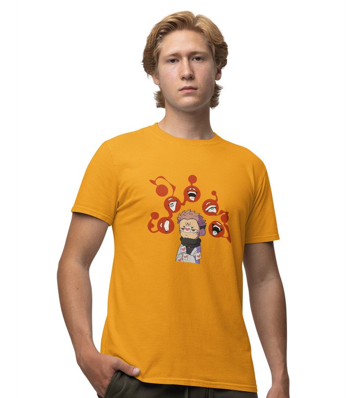 Five Faces Of Itadori Cotton Yellow Printed Tshirt For Mens and Boys