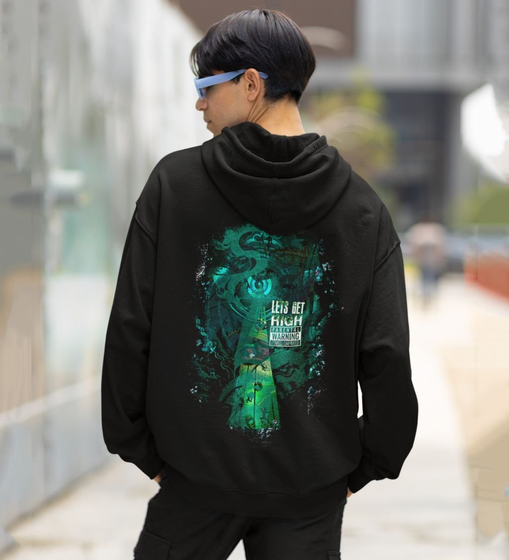Floating in the Cosmos Let Is Get High Black Cotton Printed Hoodie For Men