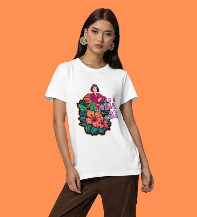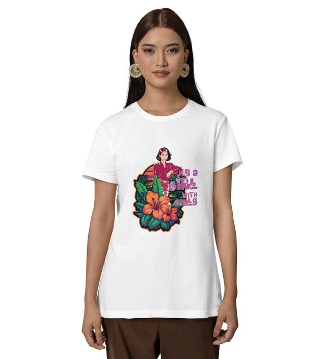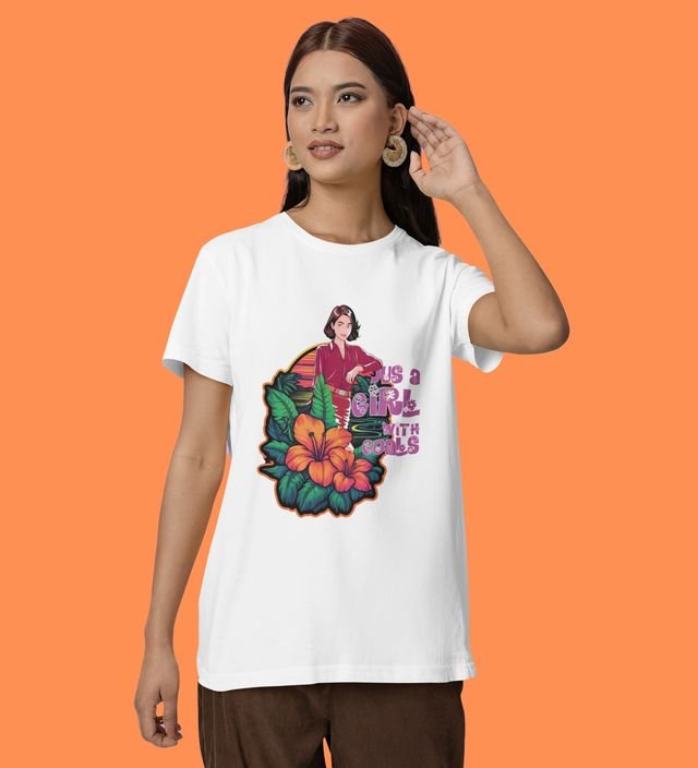 Floral Focus: Just a Girl with Goals Graphic Printed White T-Shirt