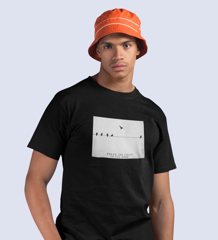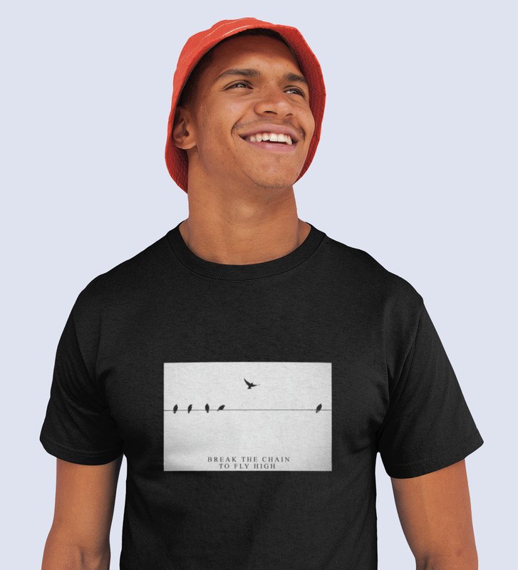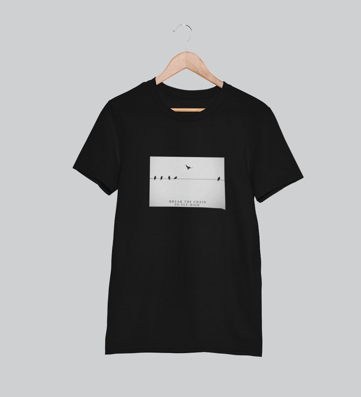 Fly High, Casual Elegance: Elevate Your Style with Black Trendy Front Print Tee