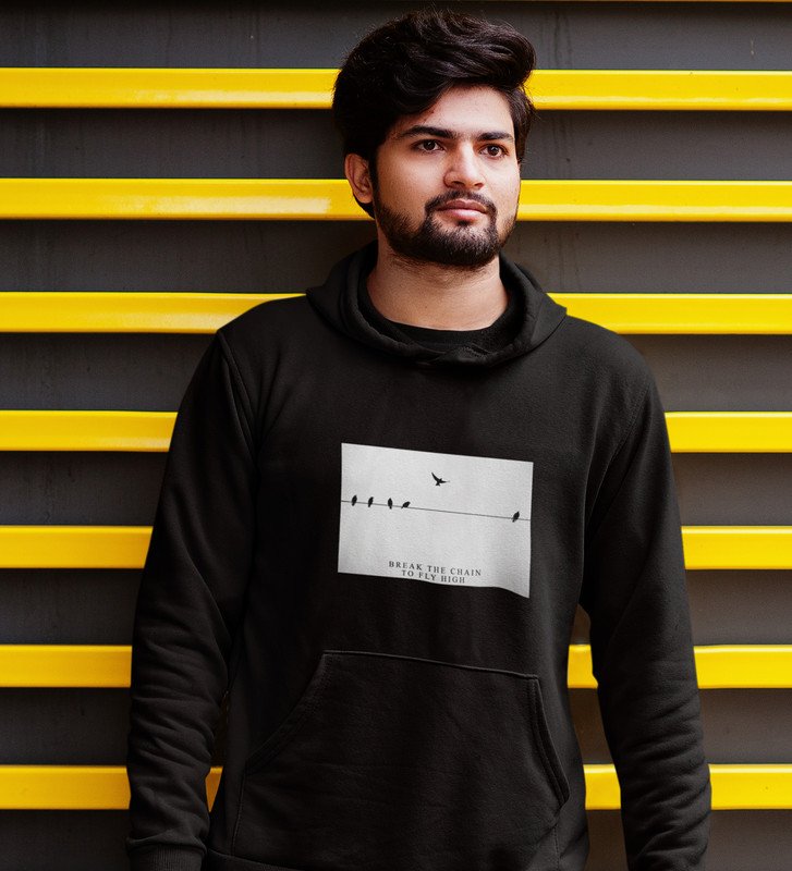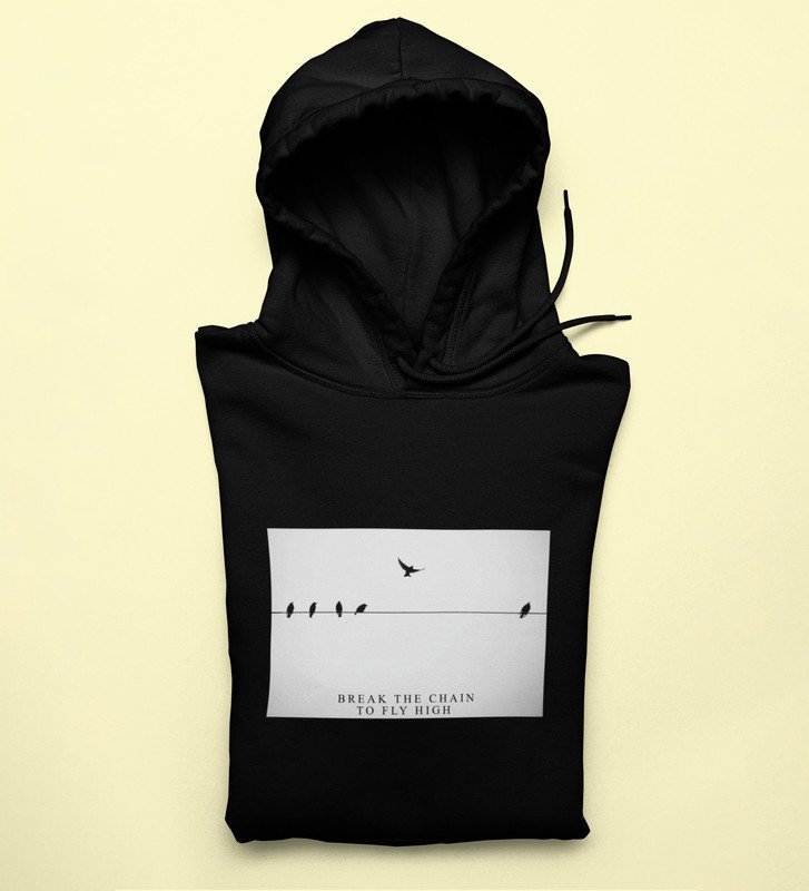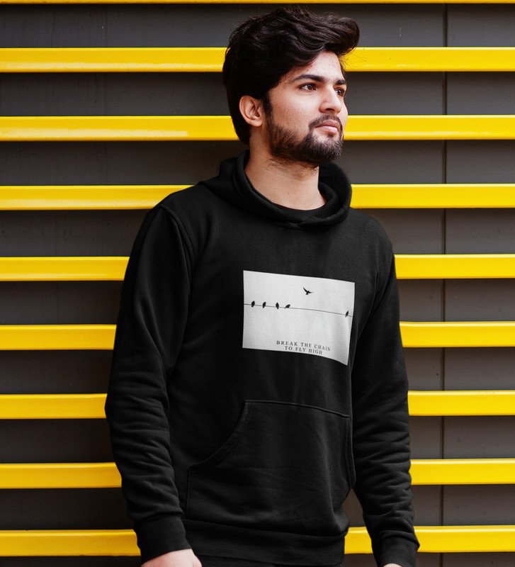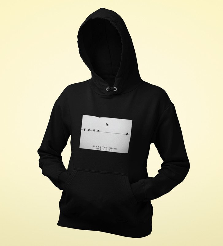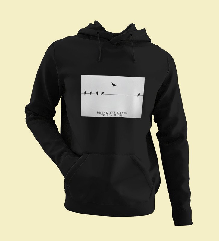 Fly High, Casual Elegance: Elevate Your Style withBlack Trendy Front Print Hoodies