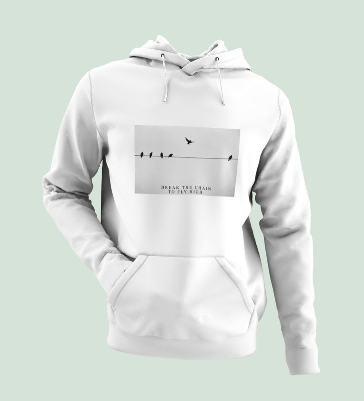 Fly High, Casual Elegance: Elevate Your Style withWhite Trendy Front Print Hoodie