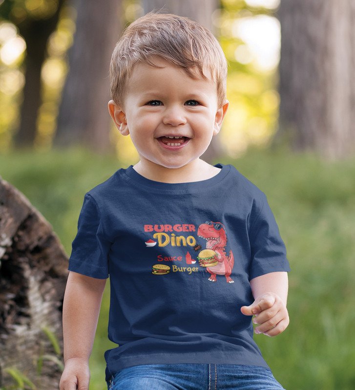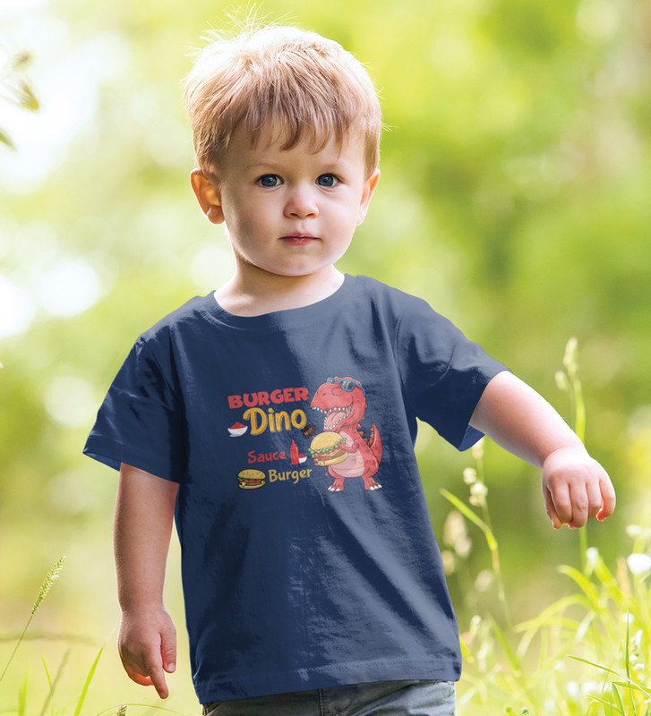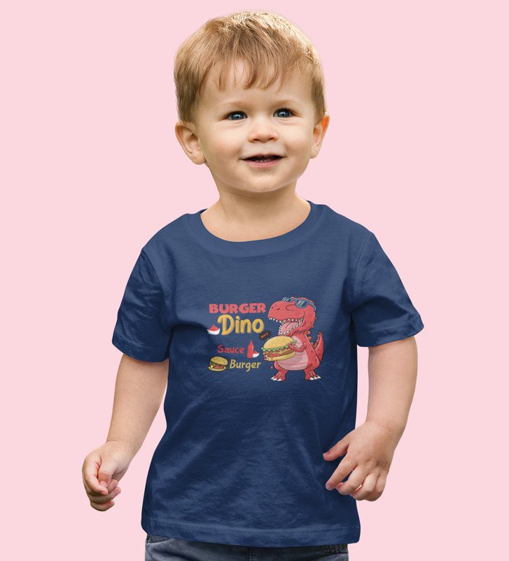 Foodie Dino, Boys Cotton Text Print T-shirt (Navy Blue)