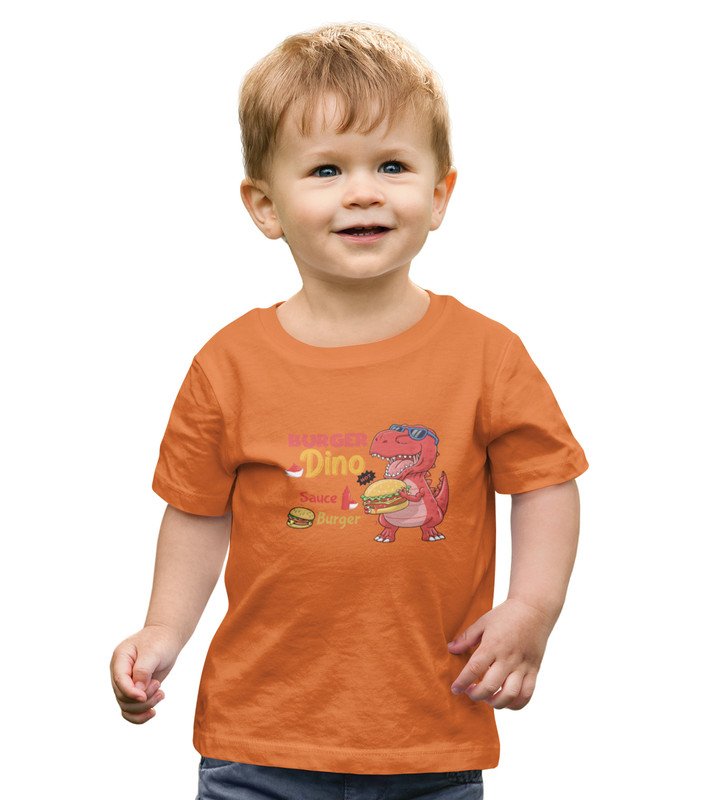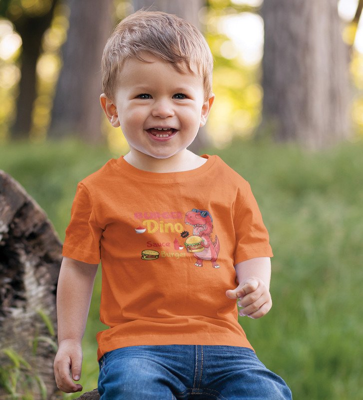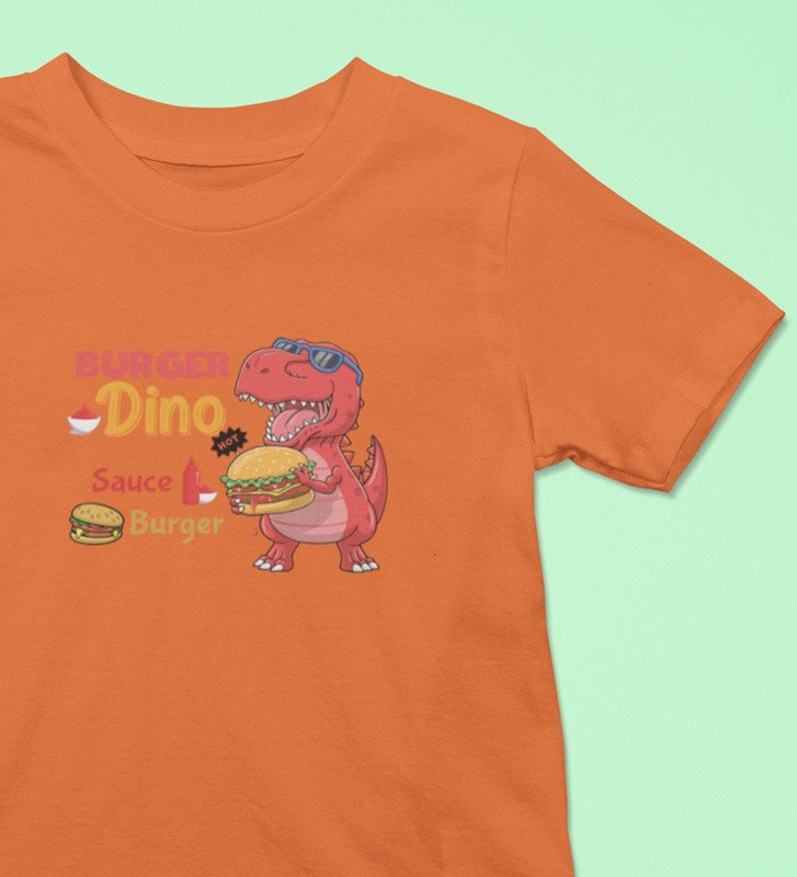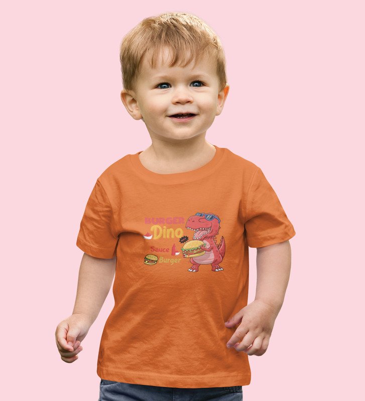 Foodie Dino, Boys Cotton Text Print T-Shirt (orange)