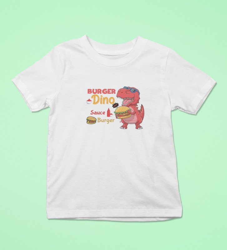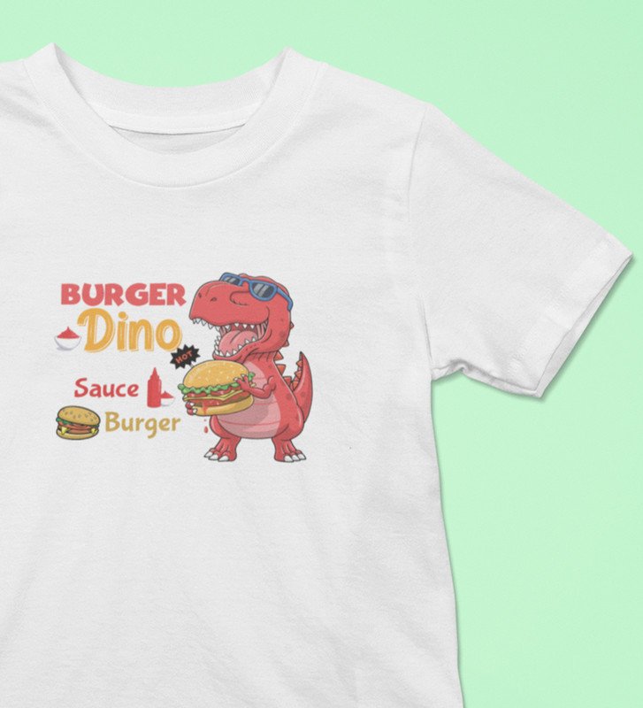 Foodie Dino, Boys Cotton Text Print Tshirt (White)
