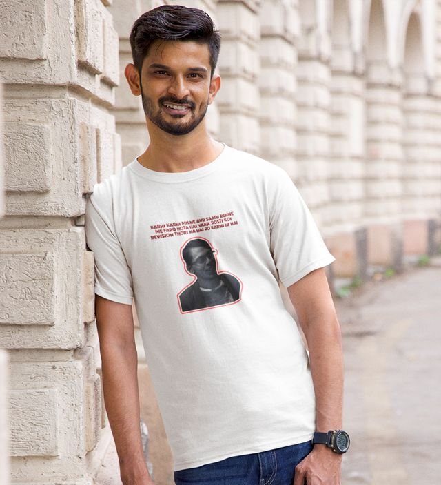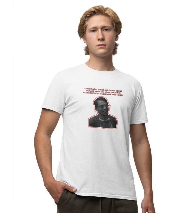 Friendship Or Revision ?? White Round Neck Cotton Half Sleeved Men T Shirt with Printed Graphics