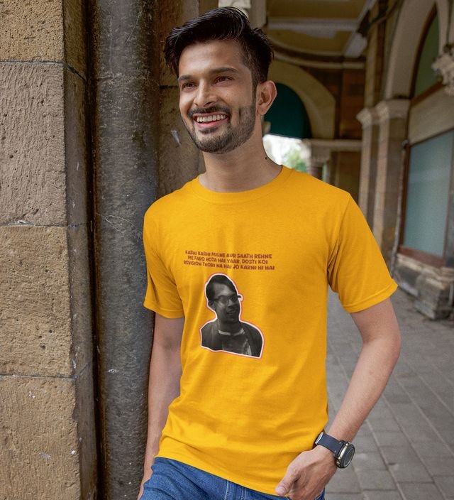 Friendship Or Revision ?? Yellow Round Neck Cotton Half Sleeved Men T Shirt with Printed Graphics