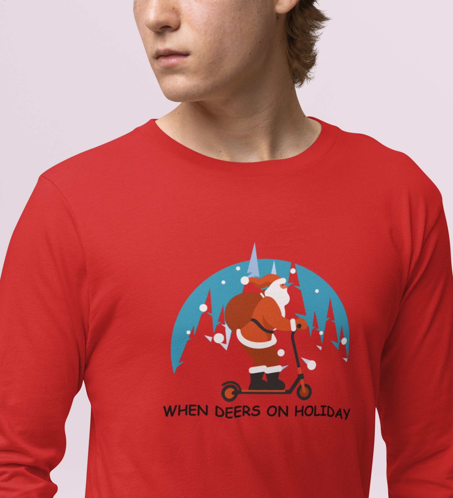Frightened Santa: Cute DesignerFull Sleeve T-shirt For Christmas Red Best Gift For Boys Girls
