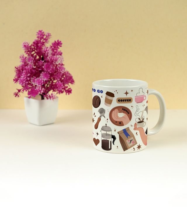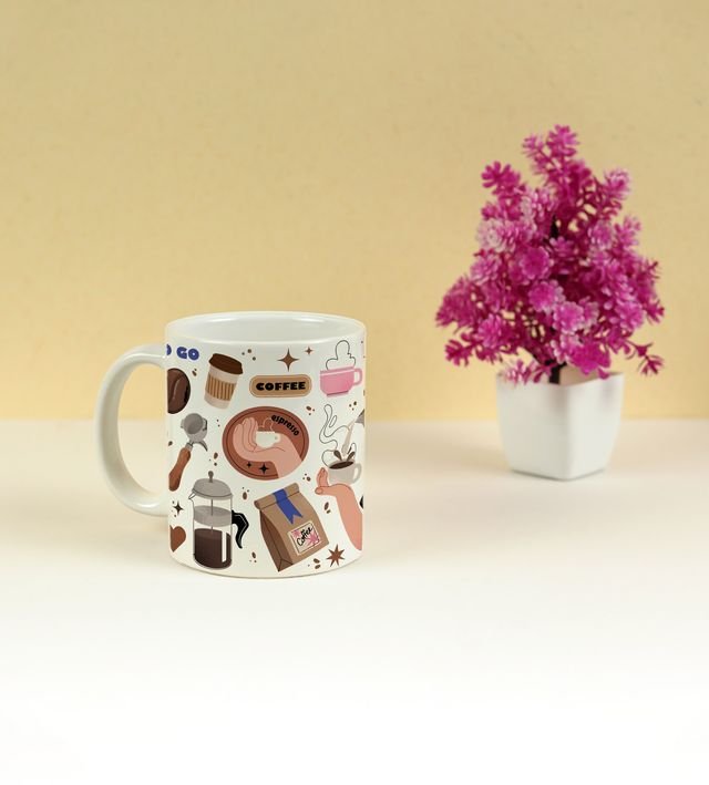 Bring a little doodle magic to your tea or coffee time! This 250ml printed mug features hand-drawn sketches of all your favorite sips and snacks
