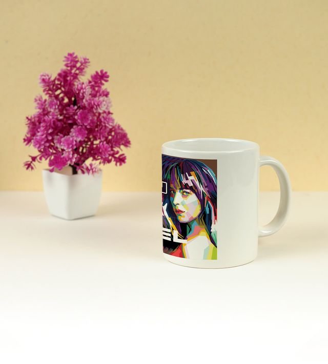 Funky Modern Art Female Face With Message Printed Coffee Mug 250ml
