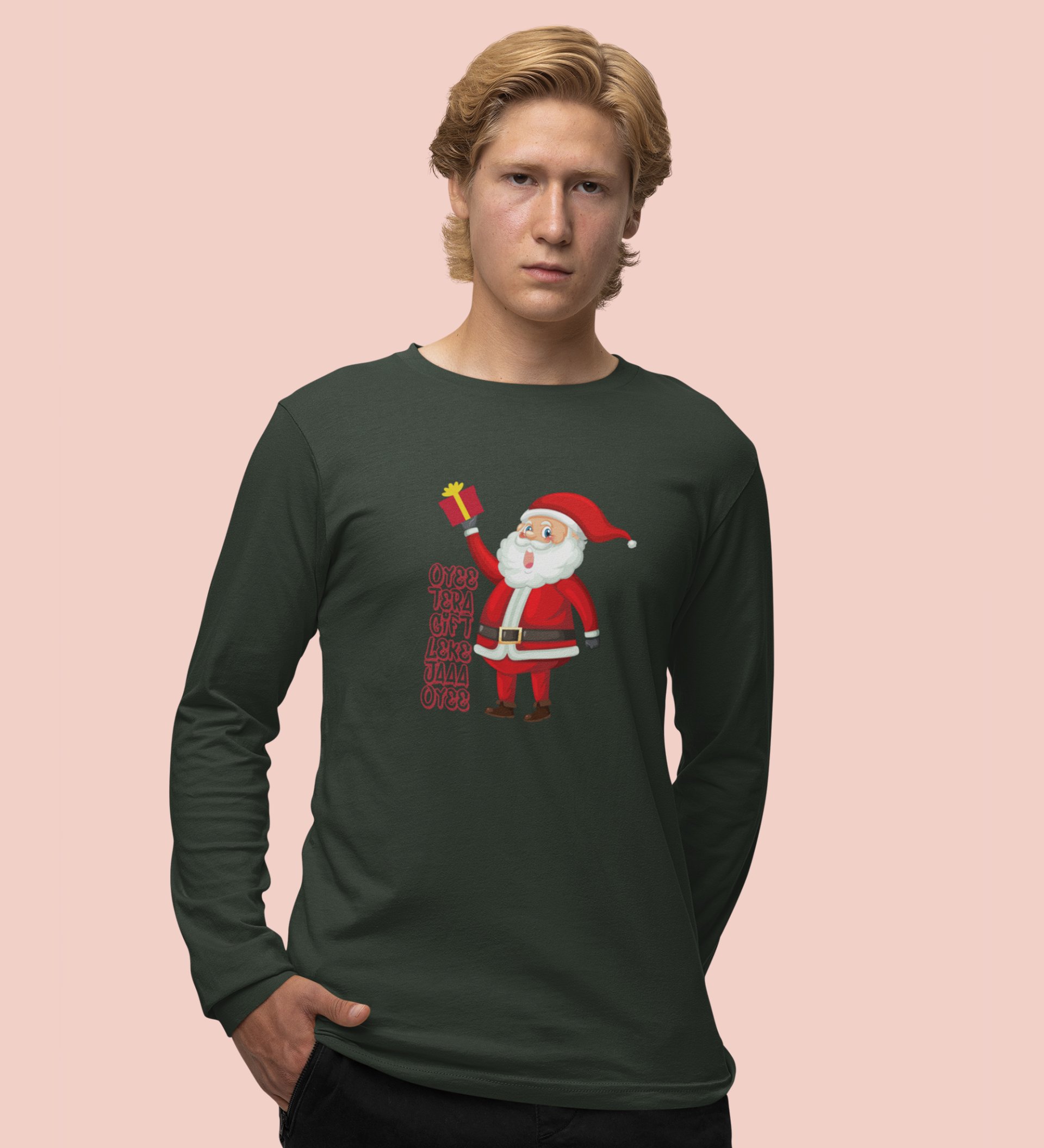 Funniest Santa : Funniest DesignerFull Sleeve T-shirt Green Perfect Gift For Kids