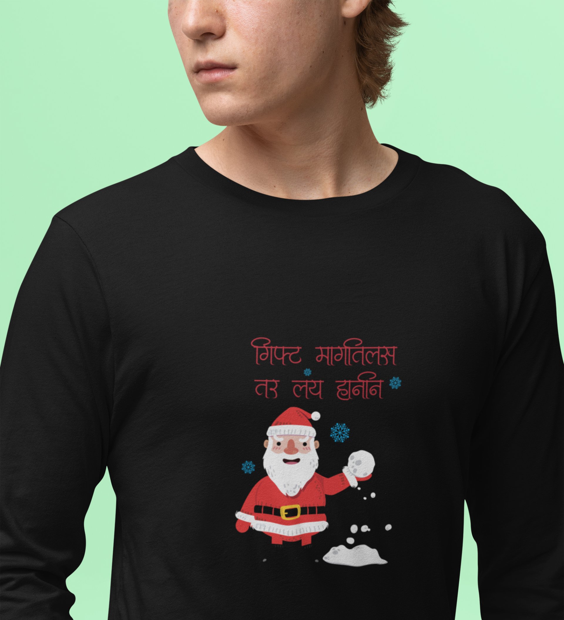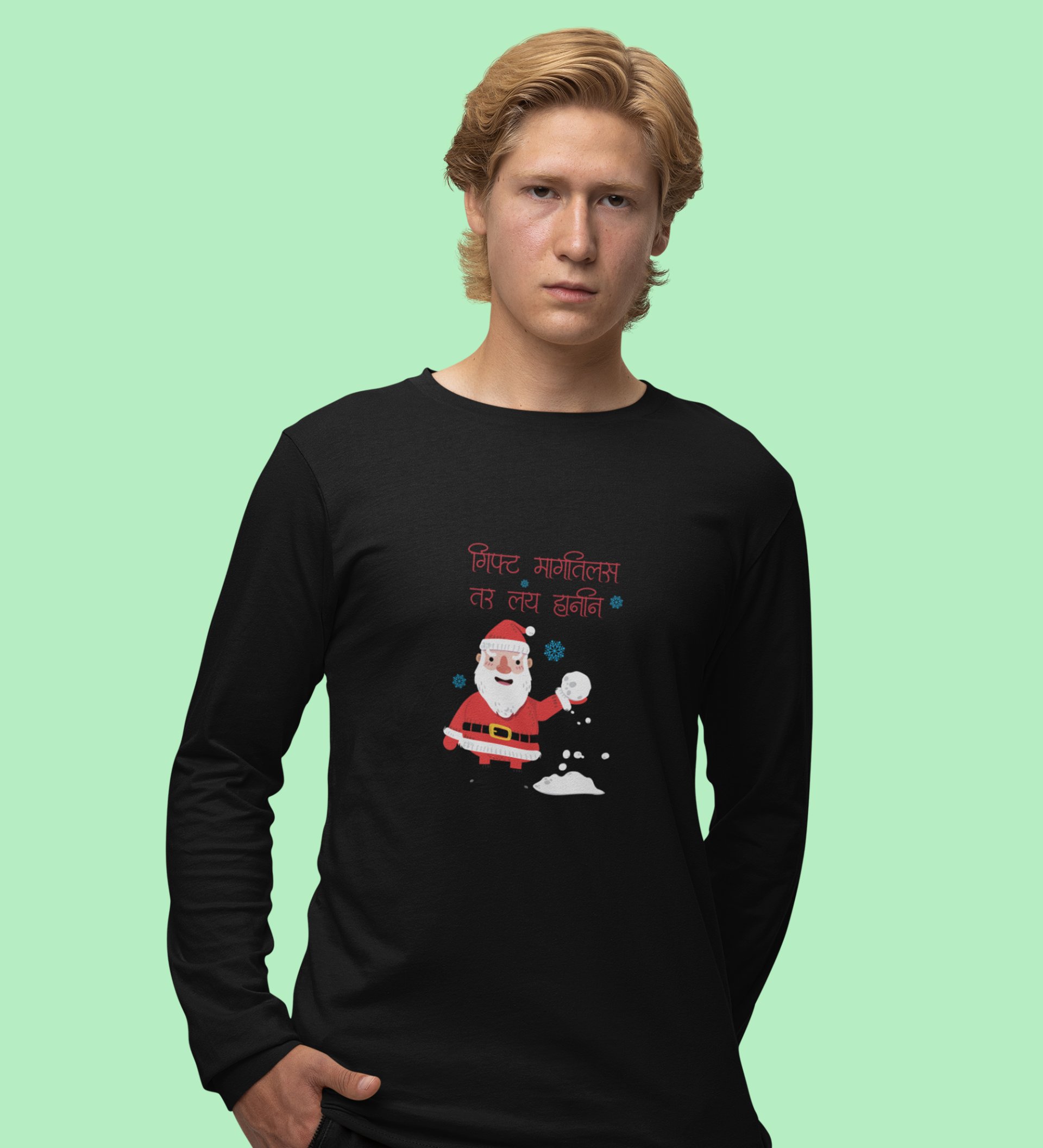 Funny Marathi Santa: Funniest DesignedFull Sleeve T-shirt Ever Black Unique Gift For Secret Santa