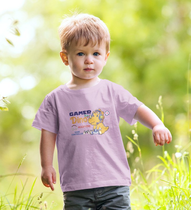 Gamer Dino, Boys Round Neck Blended Cotton T-shirt (Purple)