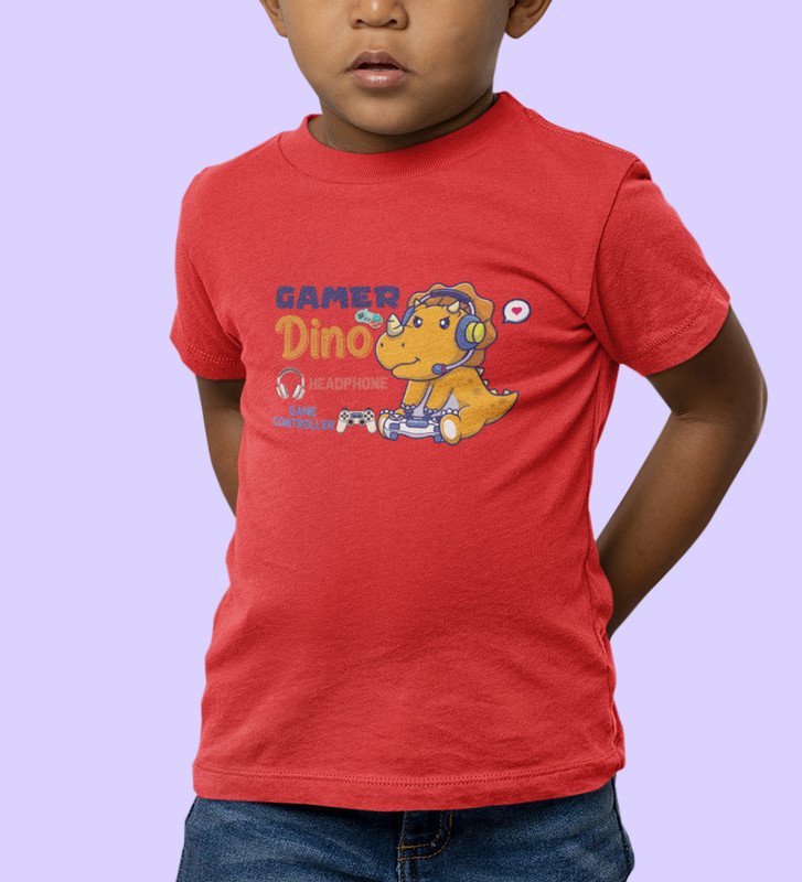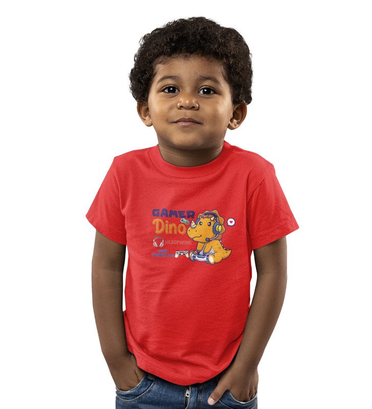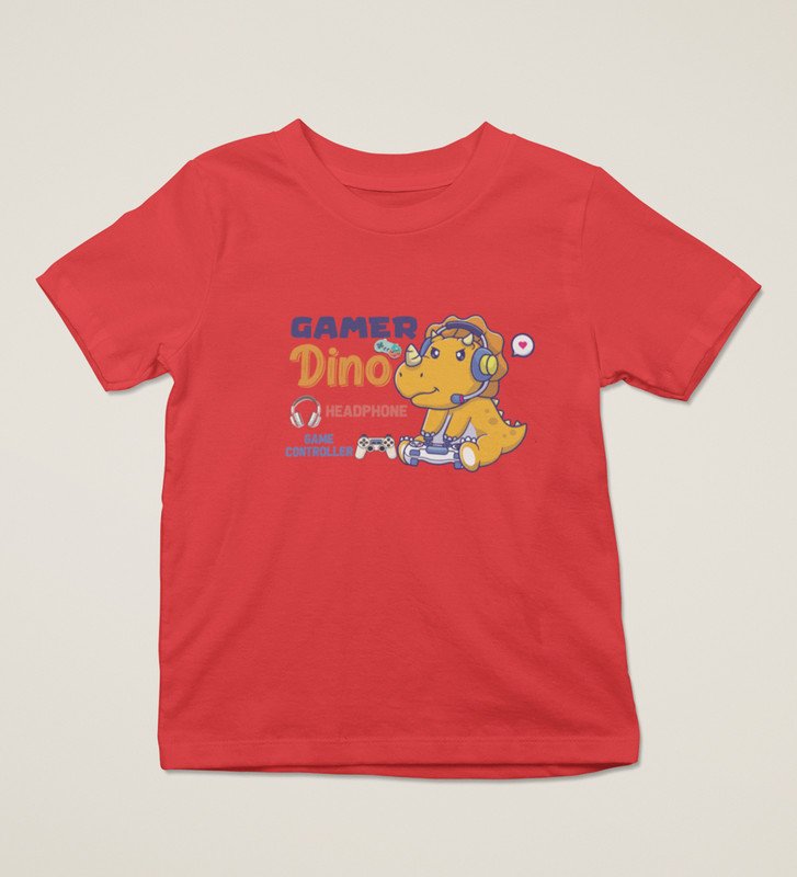 Gamer Dino, Boys Round Neck Blended Cotton Tshirt