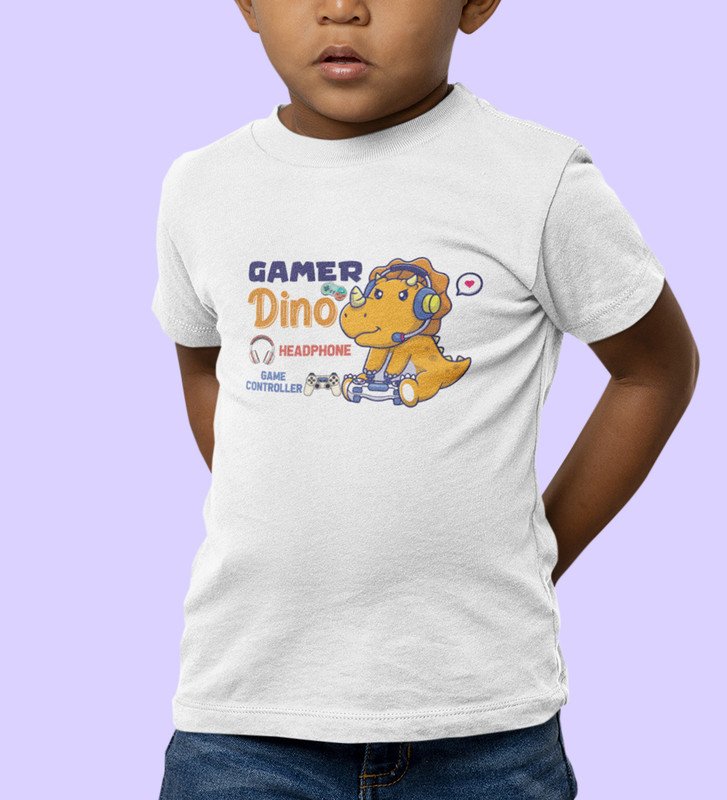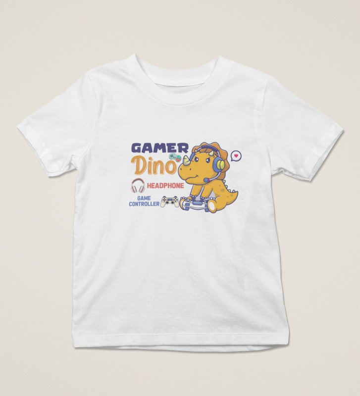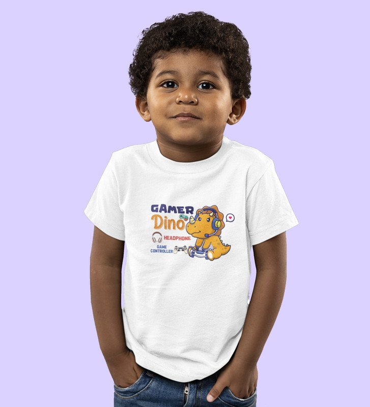 Gamer Dino, Boys Round Neck Blended Cotton Tshirt