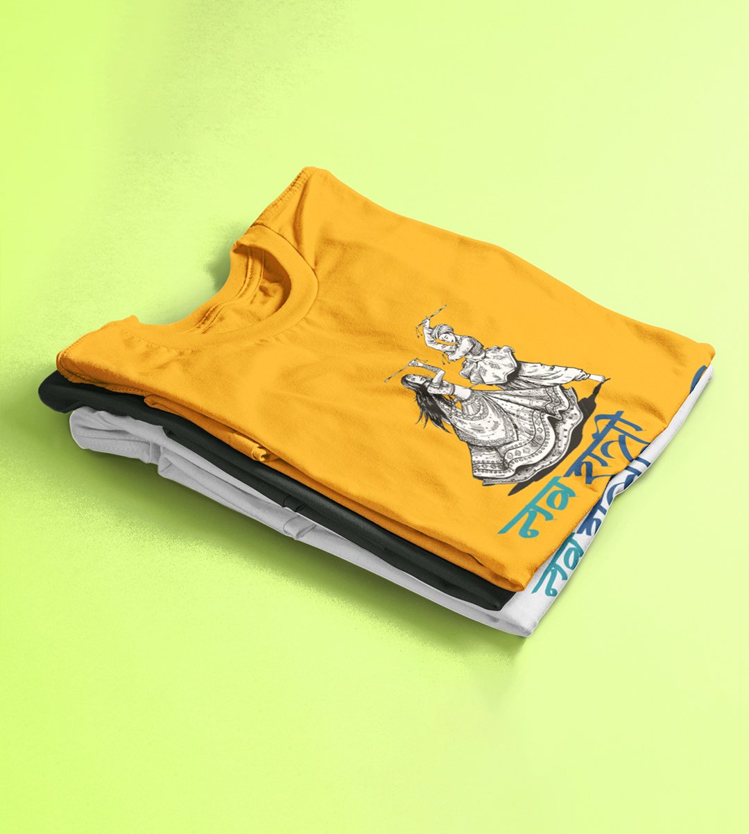 Navratri is a very auspicious festival for hindus. It takes place at the beginning of October and sometimes September. Enjoy the 9 days of festivities with full zeal and make yourself submerged in the love of Maa Durga. Navratri is also known as Durga Puja. And with this Tees, you can shine like a star during this festive season with our navratri themed cotton half sleeved Tshirts. You can pair our t-shirts with trousers and denim of your choice and make it a weekday smart casual or weekend wear. This is durable. This tshirt is smooth and soft which makes you comfortable to wear during all seasons. The printing in it is durable and odourless. It has five sizes, S,M,L,XL,XXL. The Tshirt colour is intact even after repeated washes. It can be kept in your wardrobe and hangers. Please avoid washing mashine to clean this Tee, it may affect the print. Hand wash only. We have brought you many navratri related designs printed on our different colour Tshirts to choose from. Grab it now.