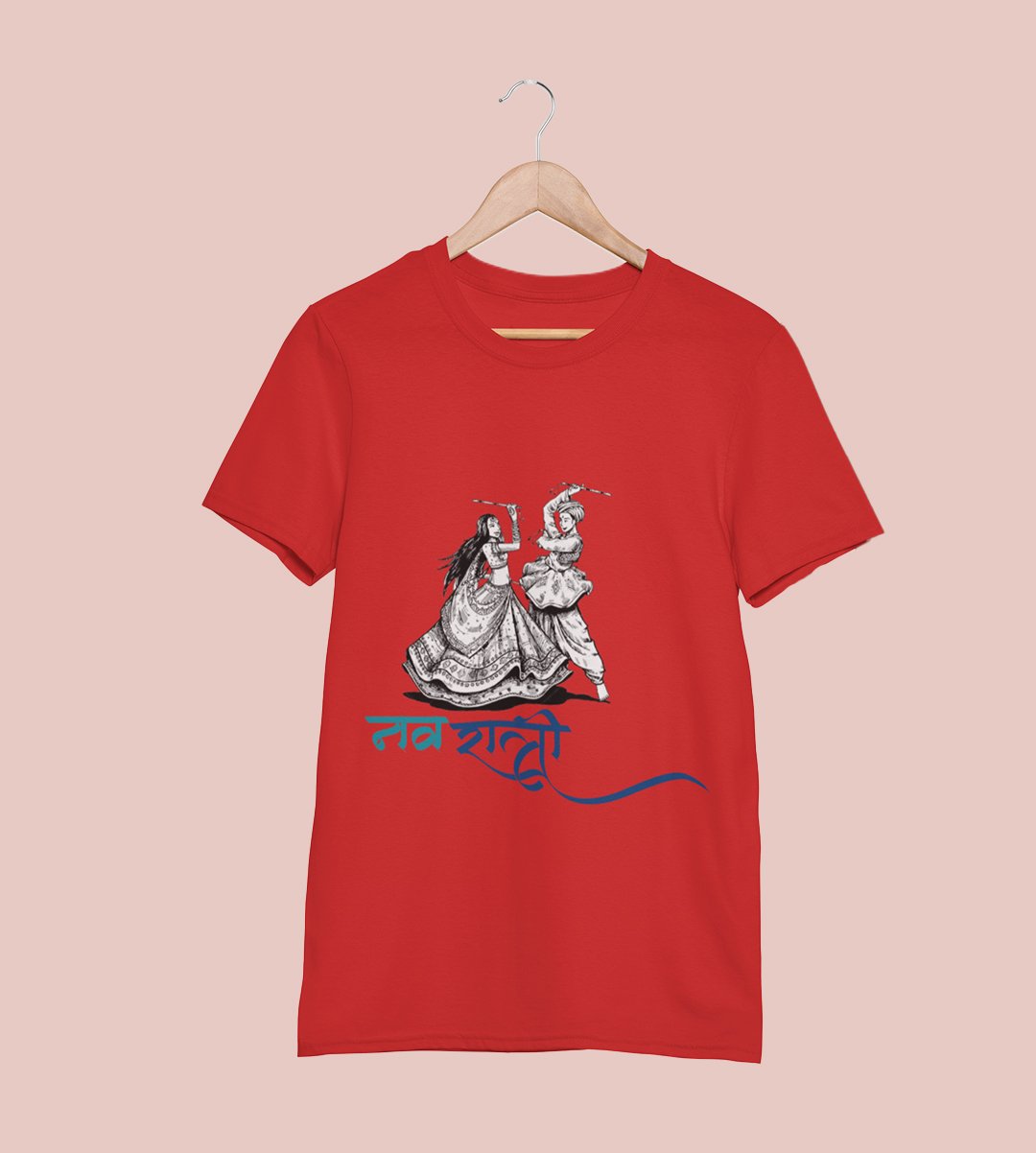 Navratri is a very auspicious festival for hindus. It takes place at the beginning of October and sometimes September. Enjoy the 9 days of festivities with full zeal and make yourself submerged in the love of Maa Durga. Navratri is also known as Durga Puja. And with this Tees, you can shine like a star during this festive season with our navratri themed cotton half sleeved Tshirts. You can pair our t-shirts with trousers and denim of your choice and make it a weekday smart casual or weekend wear. This is durable. This tshirt is smooth and soft which makes you comfortable to wear during all seasons. The printing in it is durable and odourless. It has five sizes, S,M,L,XL,XXL. The Tshirt colour is intact even after repeated washes. It can be kept in your wardrobe and hangers. Please avoid washing mashine to clean this Tee, it may affect the print. Hand wash only. We have brought you many navratri related designs printed on our different colour Tshirts to choose from. Grab it now.