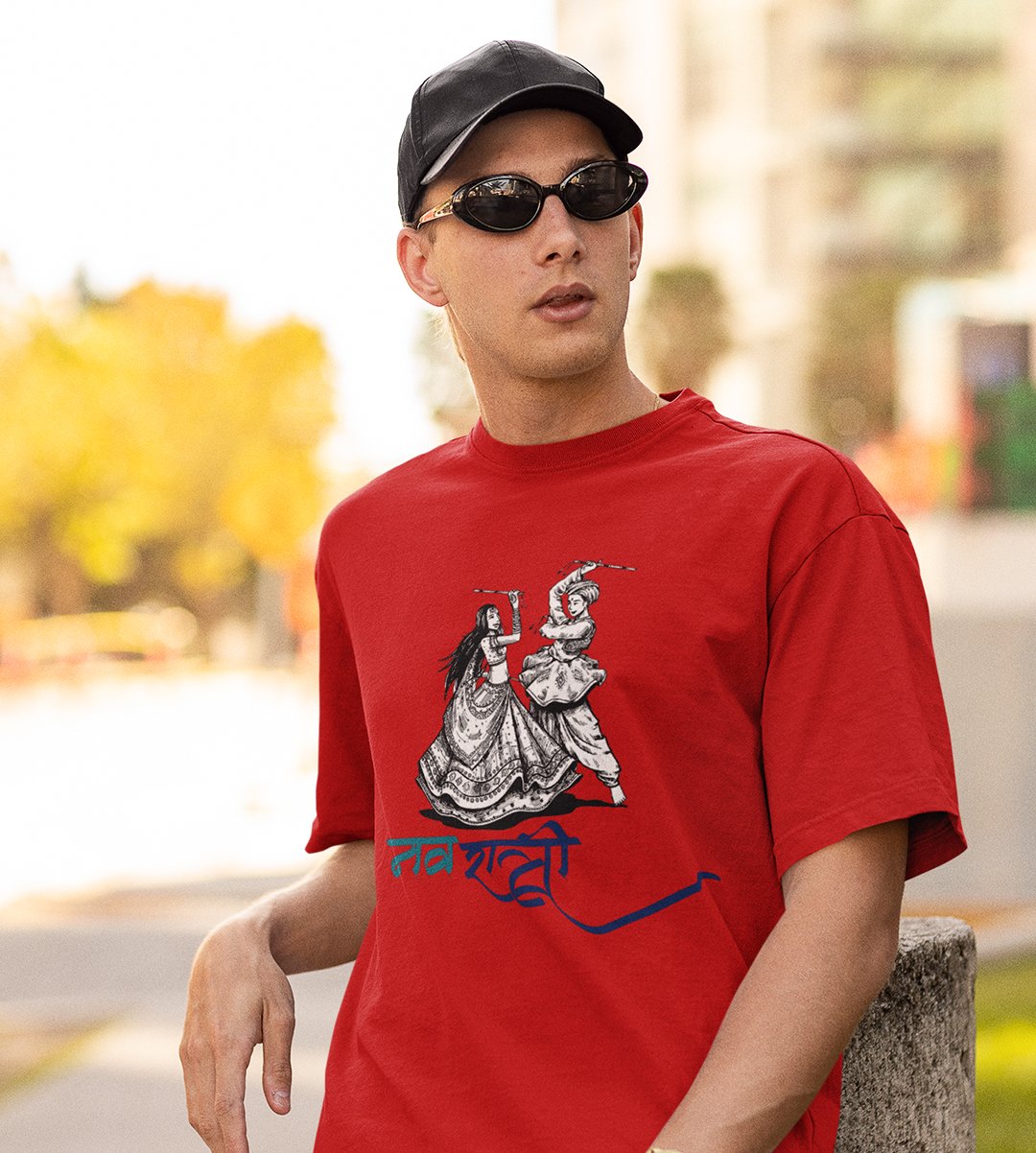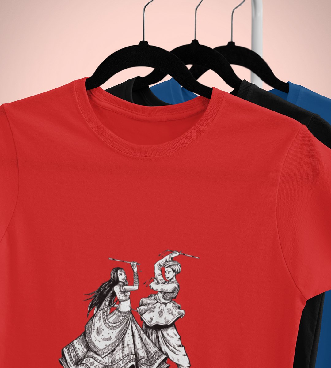 Garba dance (black & white) printed unisex adults round neck cotton half-sleeve red tshirt specially for Navratri festival/ Durga puja