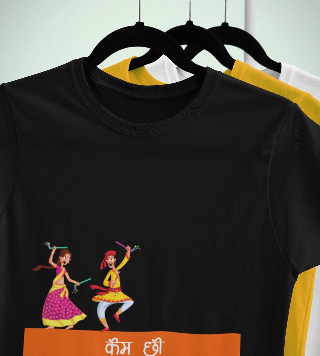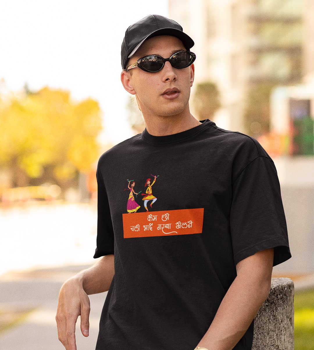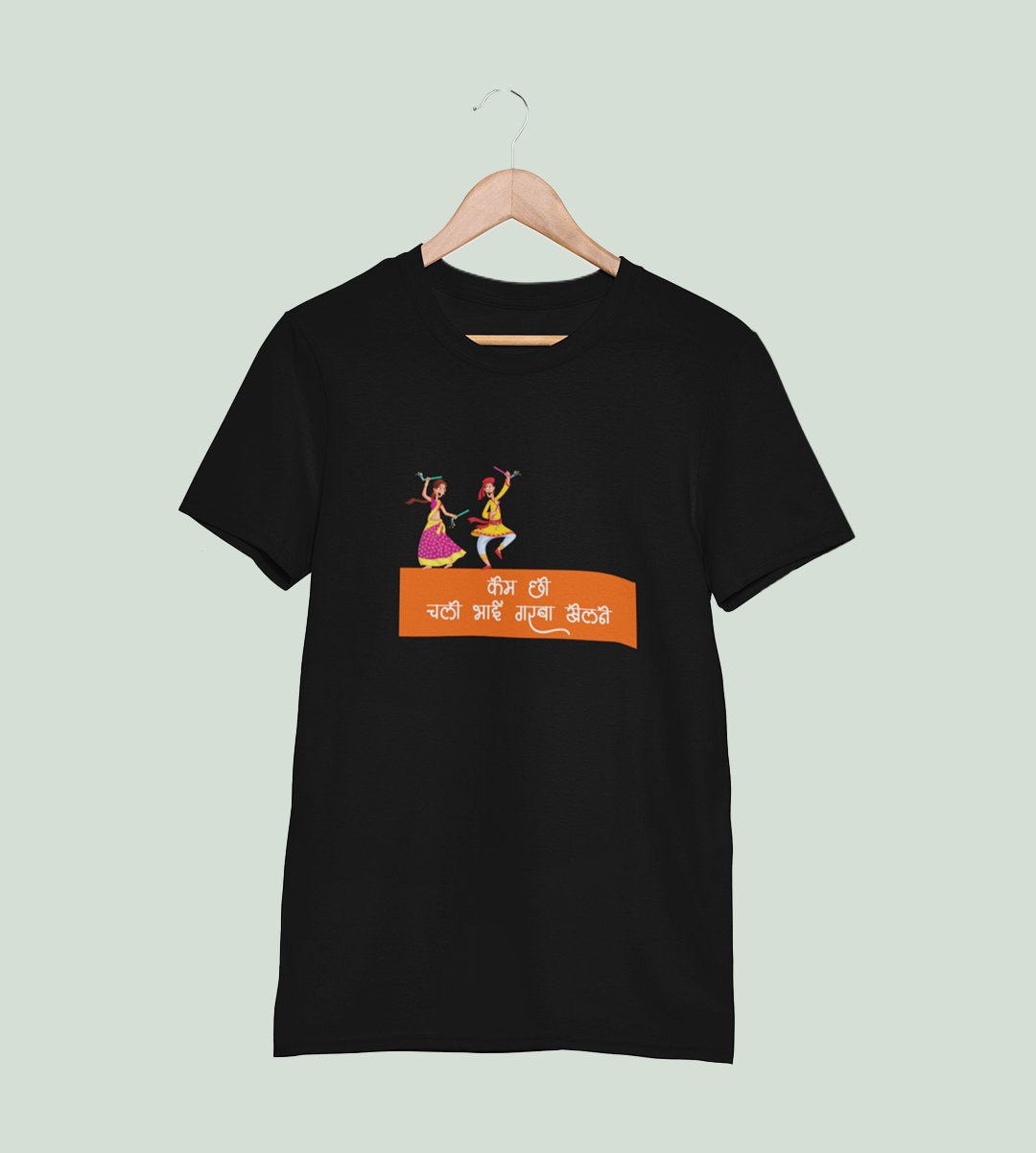 Garba dancing animated printed unisex adults round neck cotton half-sleeve black tshirt specially for Navratri festival/ Durga puja