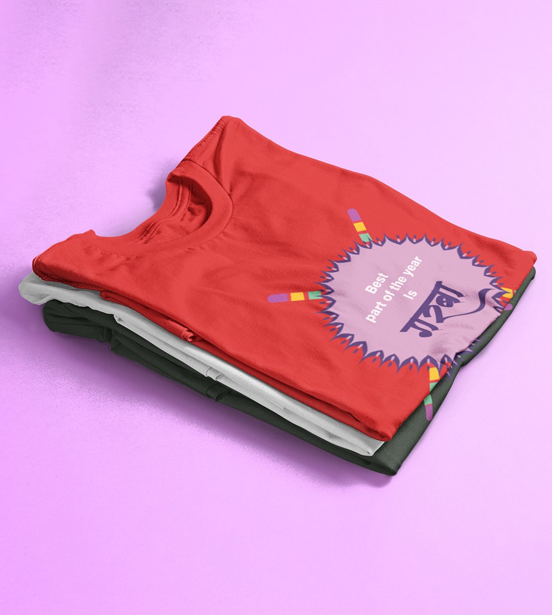 Navratri is a very auspicious festival for hindus. It takes place at the beginning of October and sometimes September. Enjoy the 9 days of festivities with full zeal and make yourself submerged in the love of Maa Durga. Navratri is also known as Durga Puja. And with this Tees, you can shine like a star during this festive season with our navratri themed cotton half sleeved Tshirts. You can pair our t-shirts with trousers and denim of your choice and make it a weekday smart casual or weekend wear. This is durable. This tshirt is smooth and soft which makes you comfortable to wear during all seasons. The printing in it is durable and odourless. It has five sizes, S,M,L,XL,XXL. The Tshirt colour is intact even after repeated washes. It can be kept in your wardrobe and hangers. Please avoid washing mashine to clean this Tee, it may affect the print. Hand wash only. We have brought you many navratri related designs printed on our different colour Tshirts to choose from. Grab it now.