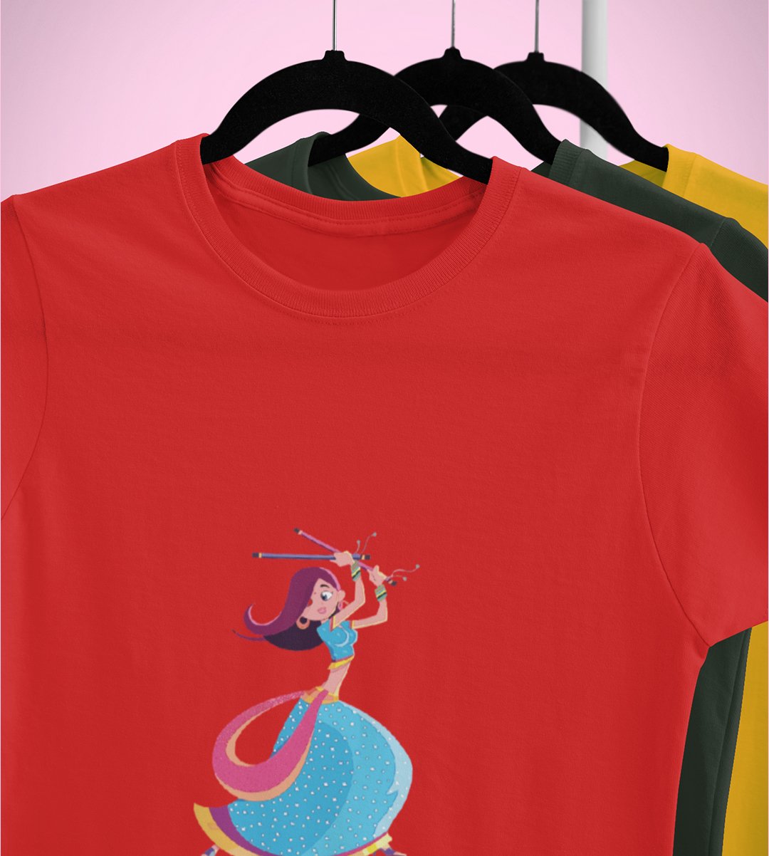 Garba girl printed unisex adults round neck cotton half-sleeve red tshirt specially for Navratri festival/ Durga puja
