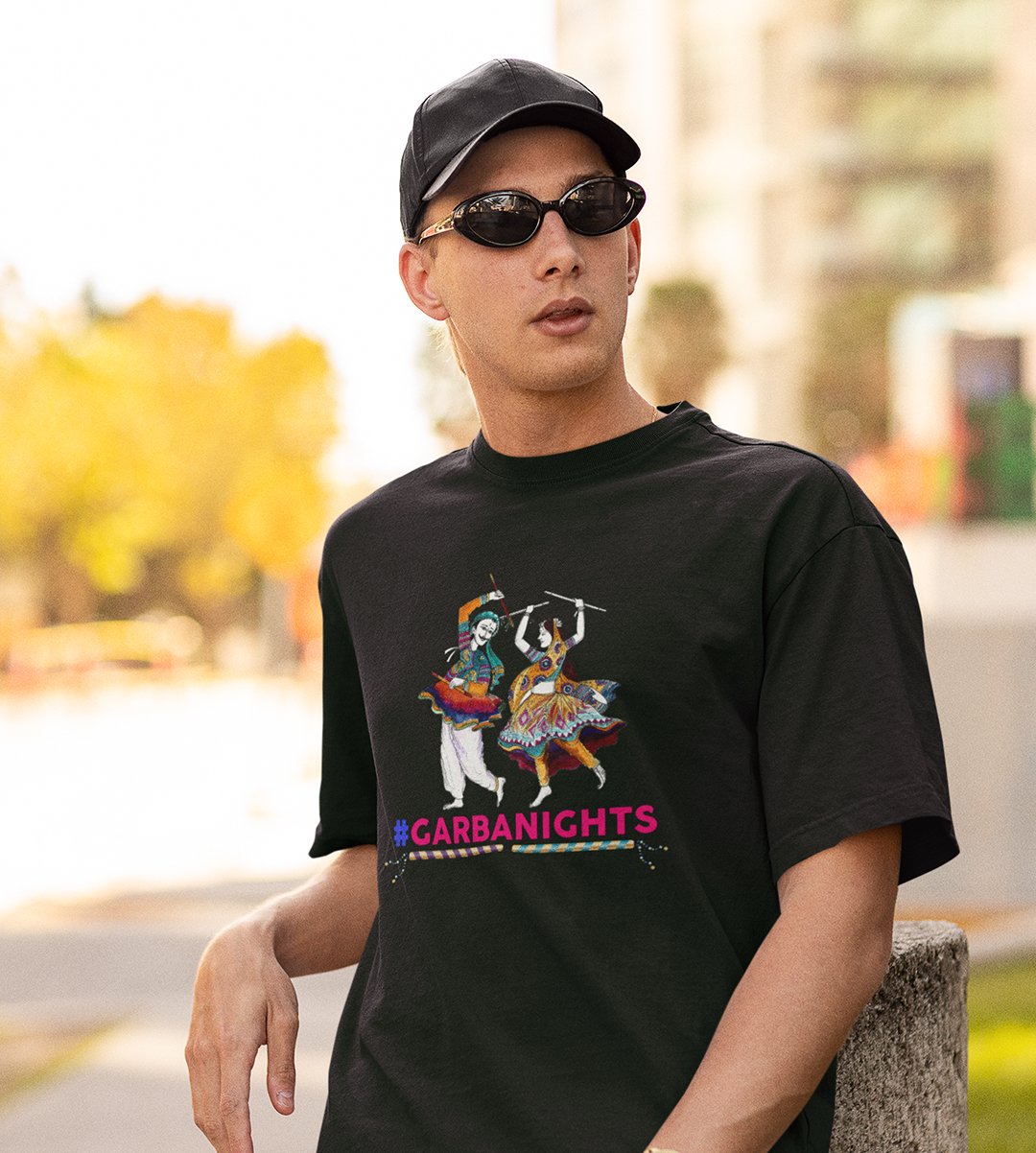Garba Nights printed unisex adults round neck cotton half-sleeve green tshirt specially for Navratri festival/ Durga puja