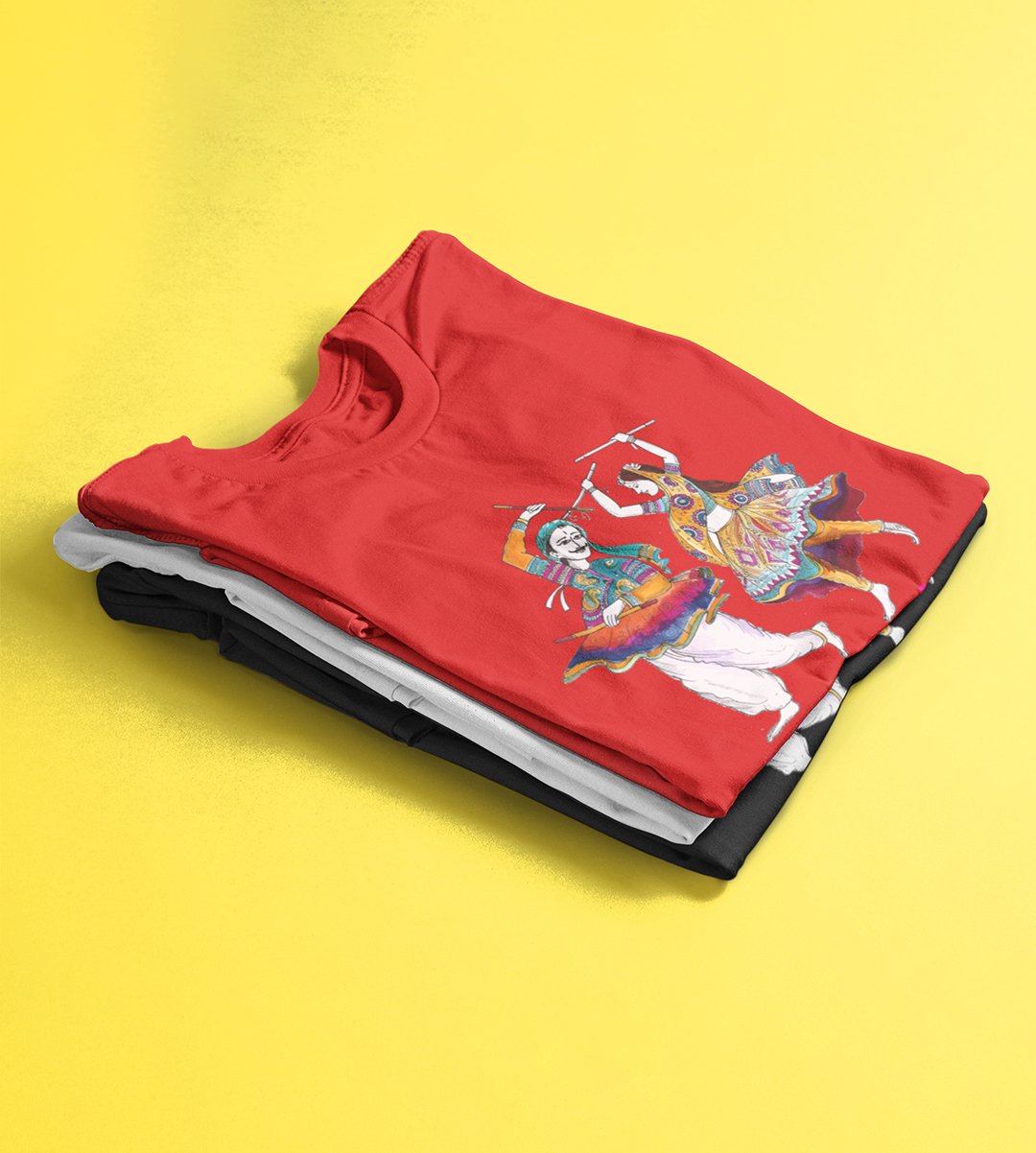 Navratri is a very auspicious festival for hindus. It takes place at the beginning of October and sometimes September. Enjoy the 9 days of festivities with full zeal and make yourself submerged in the love of Maa Durga. Navratri is also known as Durga Puja. And with this Tees, you can shine like a star during this festive season with our navratri themed cotton half sleeved Tshirts. You can pair our t-shirts with trousers and denim of your choice and make it a weekday smart casual or weekend wear. This is durable. This tshirt is smooth and soft which makes you comfortable to wear during all seasons. The printing in it is durable and odourless. It has five sizes, S,M,L,XL,XXL. The Tshirt colour is intact even after repeated washes. It can be kept in your wardrobe and hangers. Please avoid washing mashine to clean this Tee, it may affect the print. Hand wash only. We have brought you many navratri related designs printed on our different colour Tshirts to choose from. Grab it now.