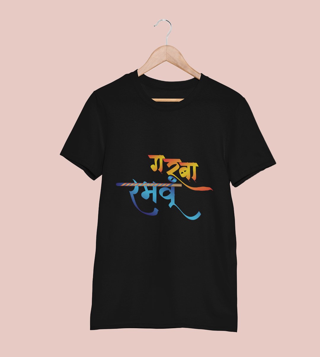 Garba Rambu printed unisex adults round neck cotton half-sleeve black tshirt specially for Navratri festival/ Durga puja