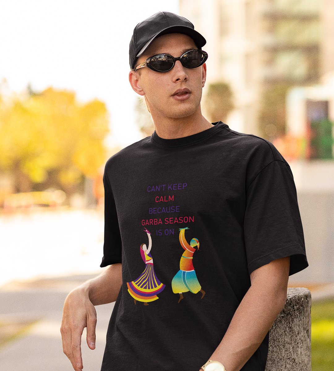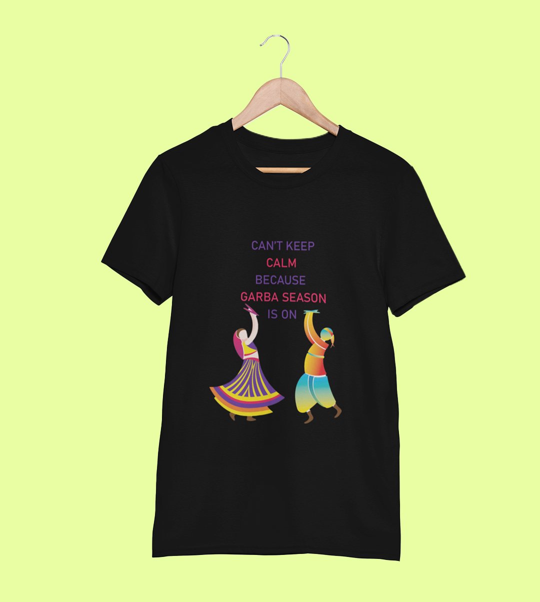 Garba season is on printed unisex adults round neck cotton half-sleeve black tshirt specially for Navratri festival/ Durga puja