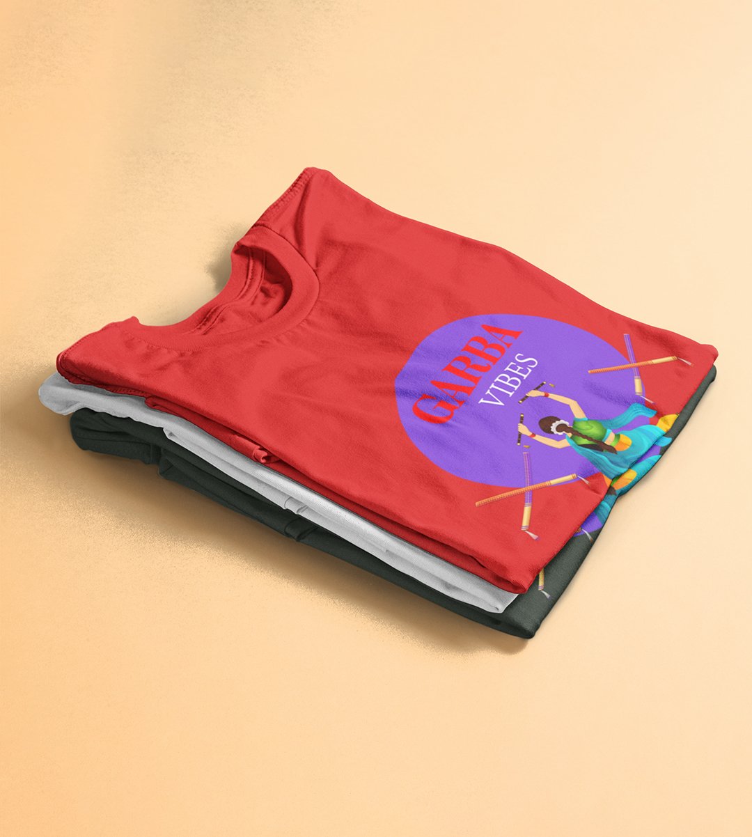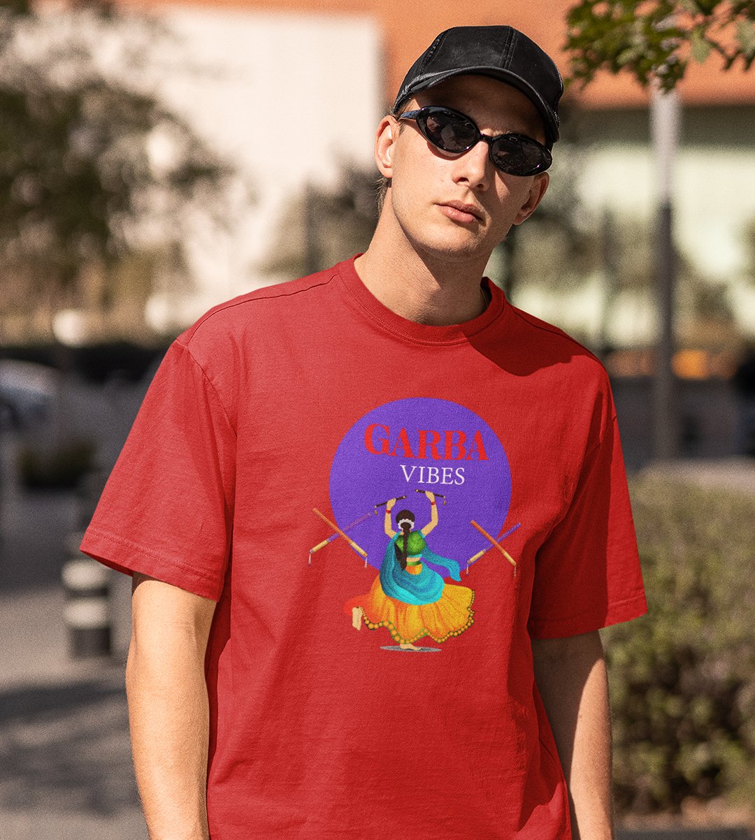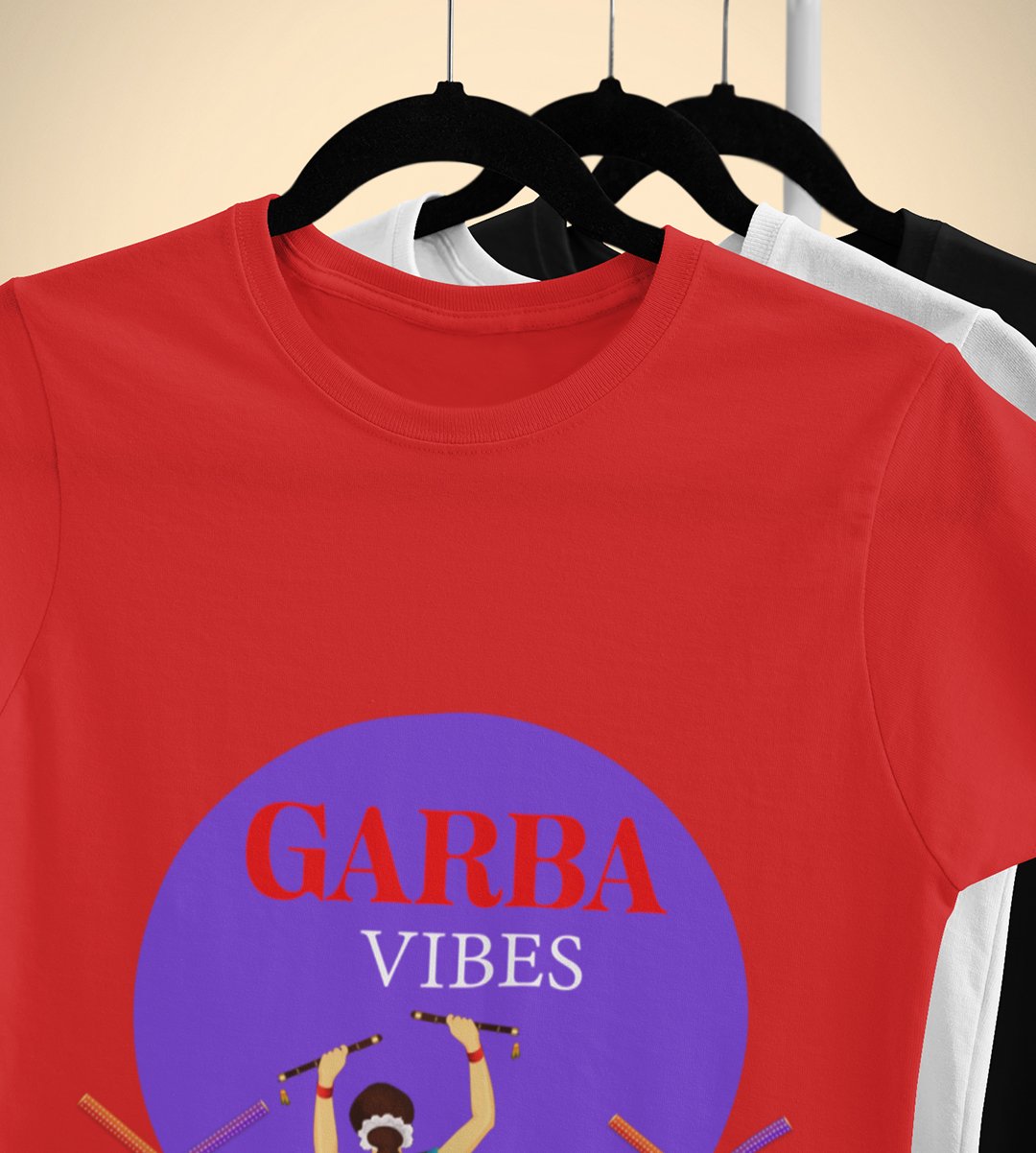 Garba vibes printed unisex adults round neck cotton half-sleeve red tshirt specially for Navratri festival/ Durga puja